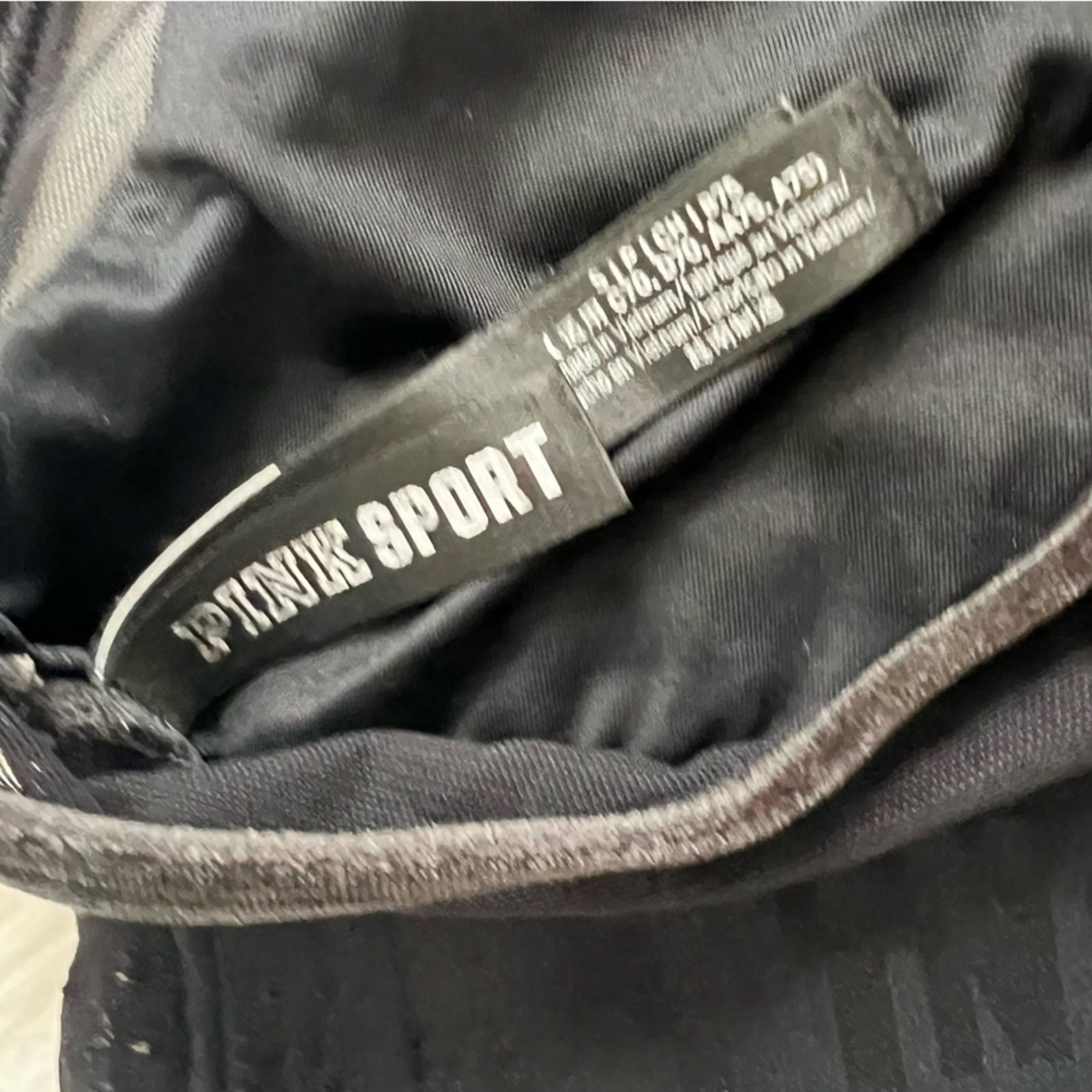 как выглядит Victorias Secret PINK Sport Black Velvet Logo Racerback Sports Bra Small фото