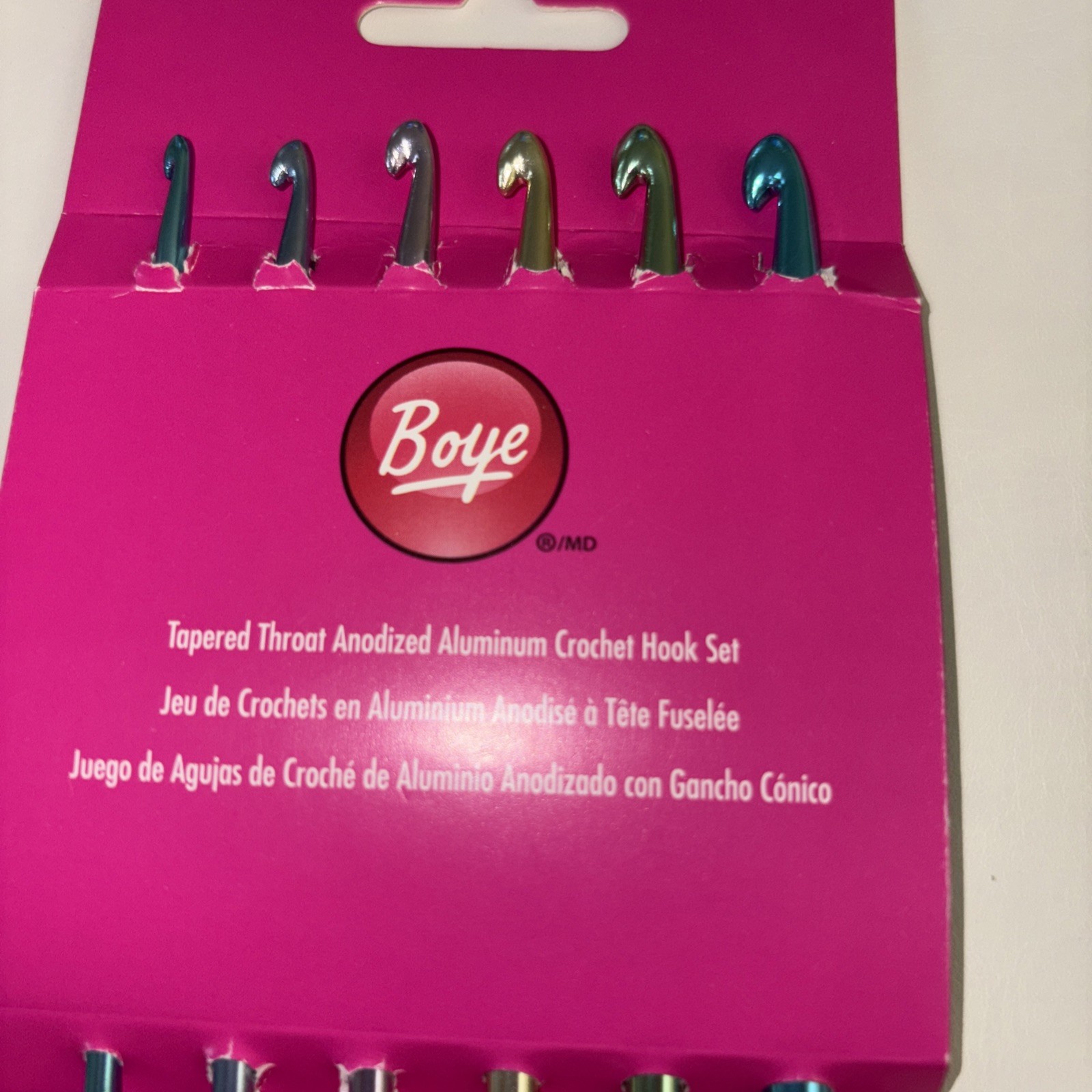 Boye Tapered Throat Anodized Aluminum Crochet Hook Set of 6 US E thru J