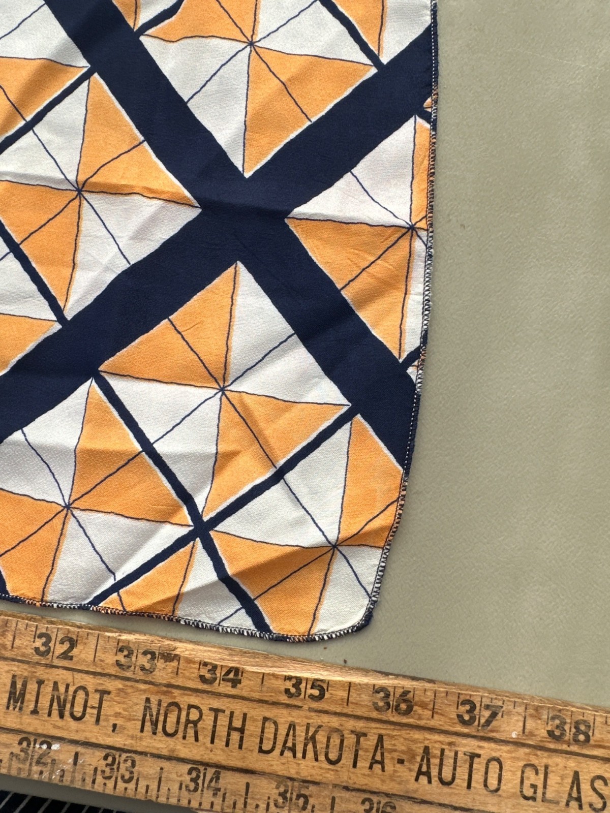 Vintage Geometric Rectangle Shawl Scarf Lightweight 36x10 Inch Orange Navy White