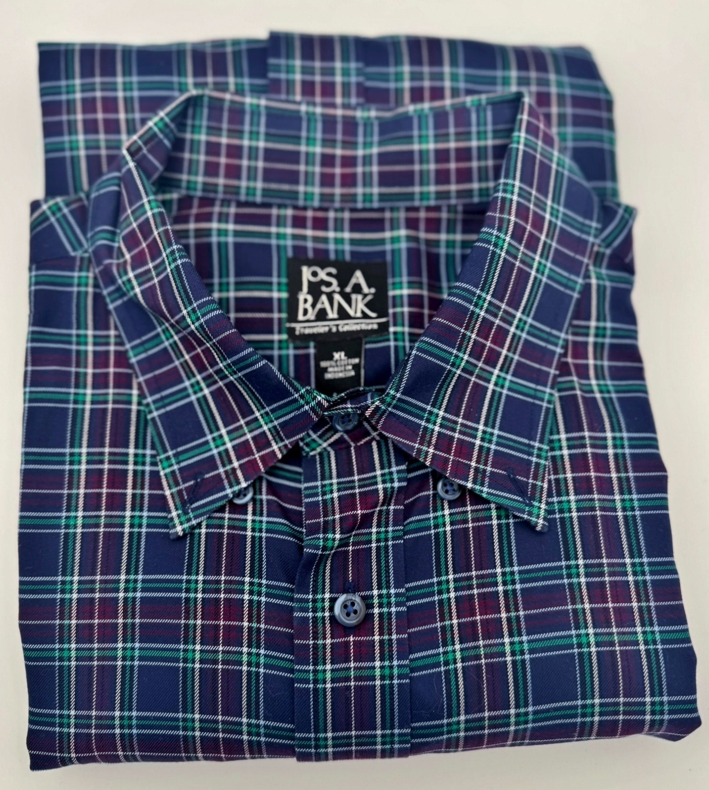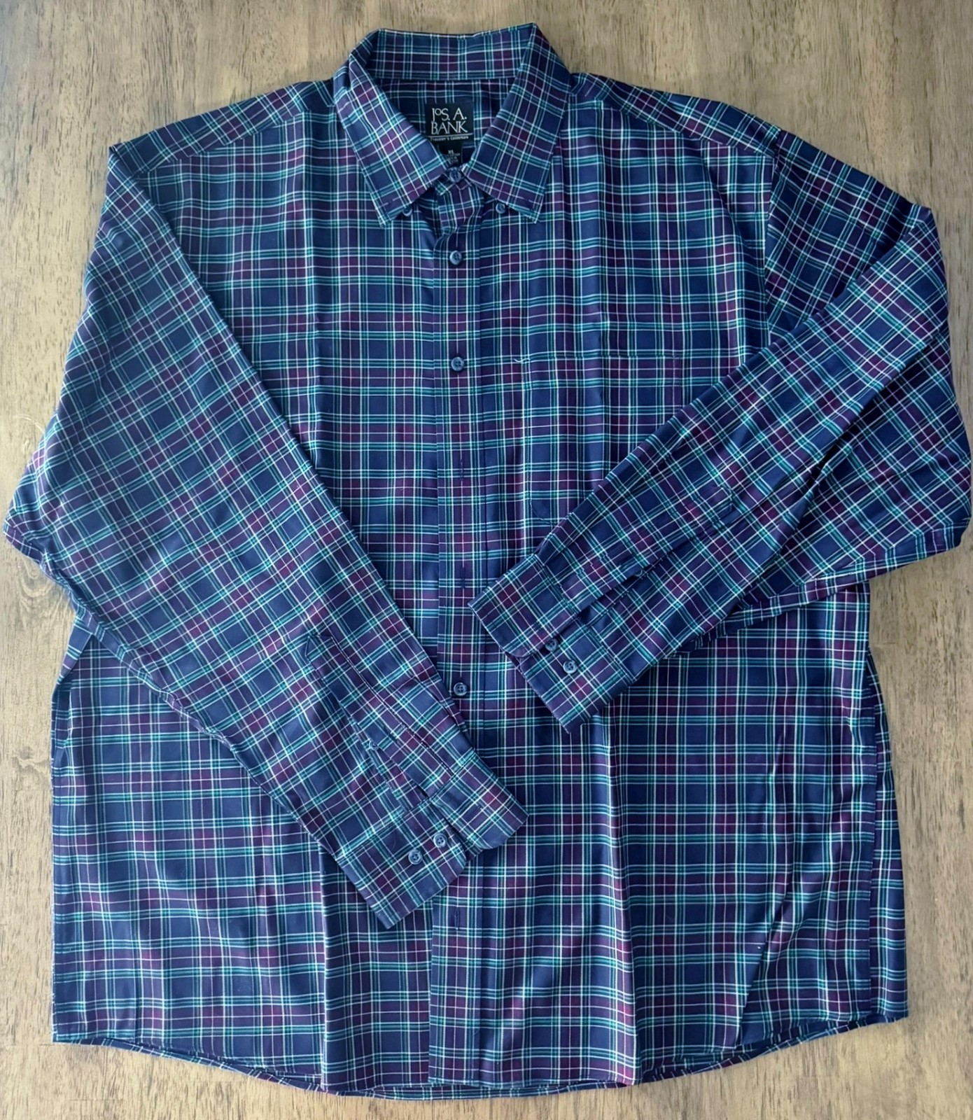 Jos A Bank Mens Blue Purple Plaid Traveler's Collection Cotton Dress Shirt XL
