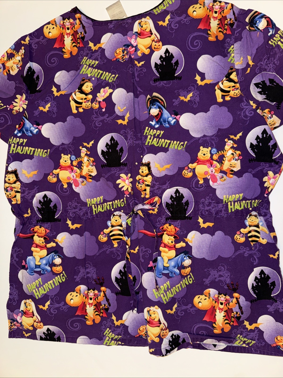 Disney Halloween Scrub Top Purple Winnie The Pooh Tigger Piglet Spooky Wmn L