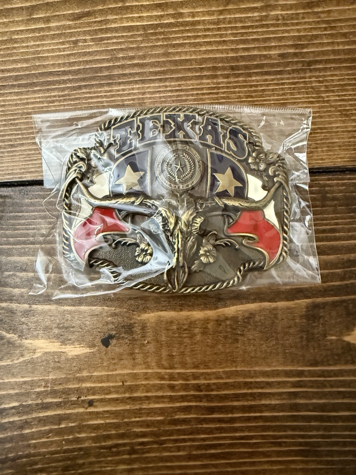 State of Texas Flag Belt Buckle Longhorn Bull Skull-Pewter- Good Quality
