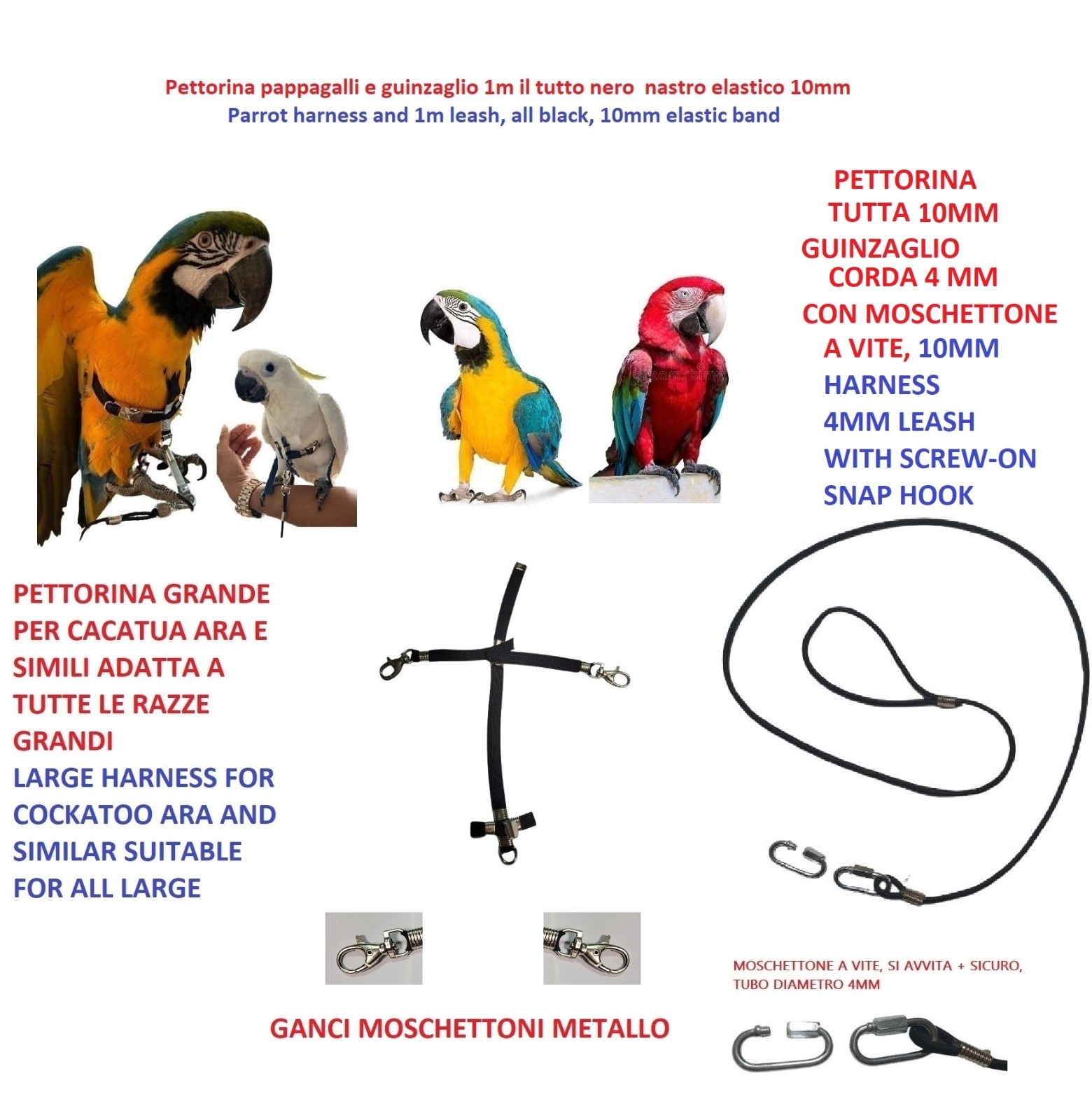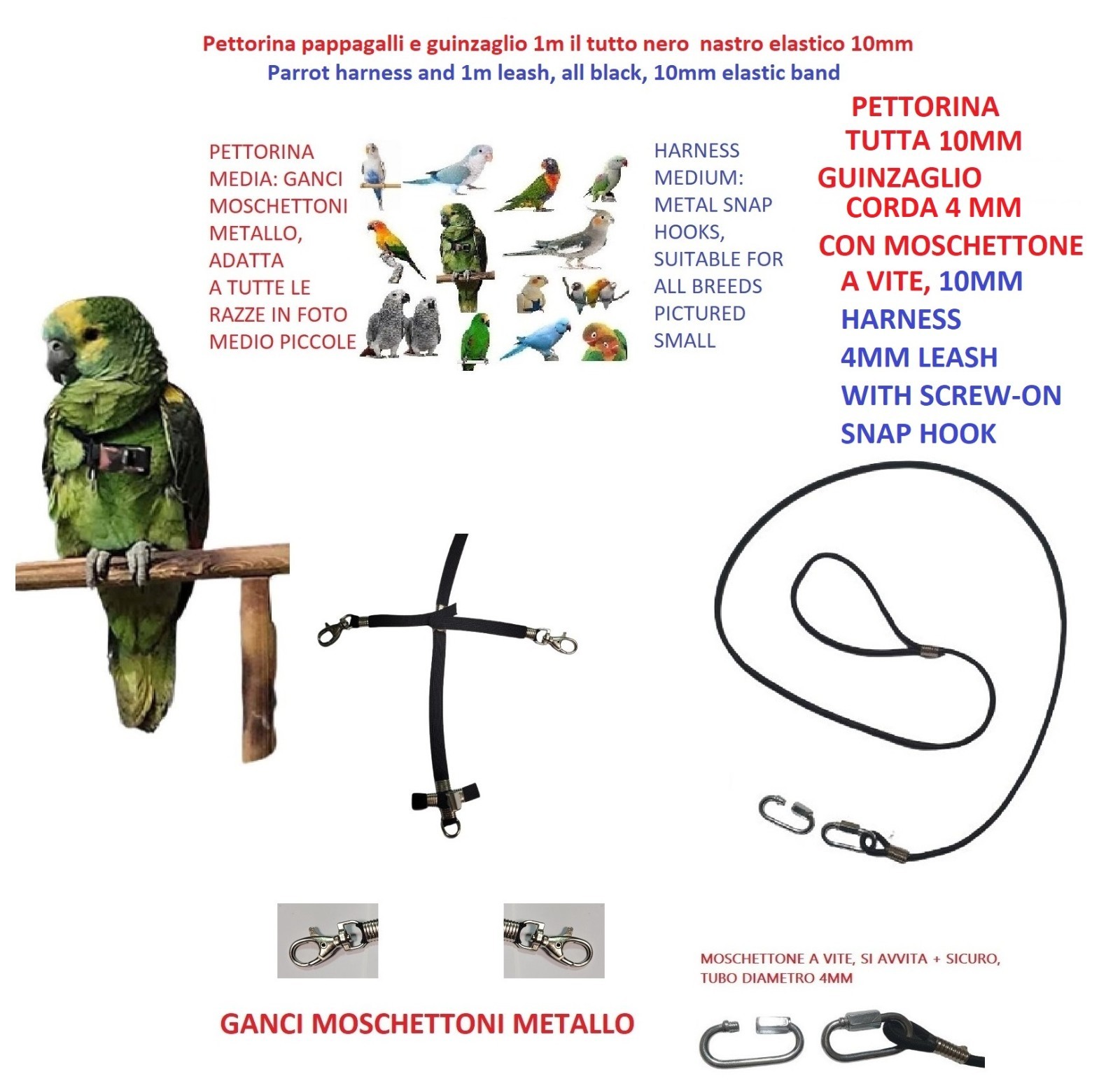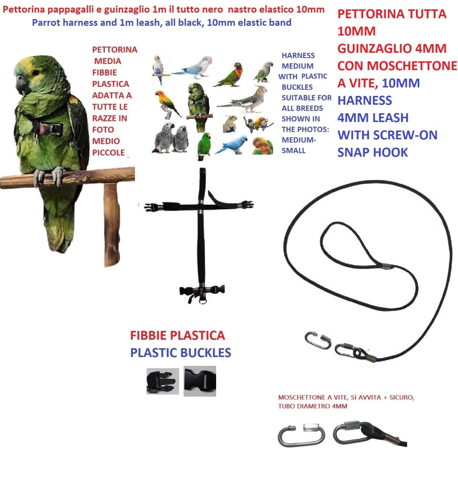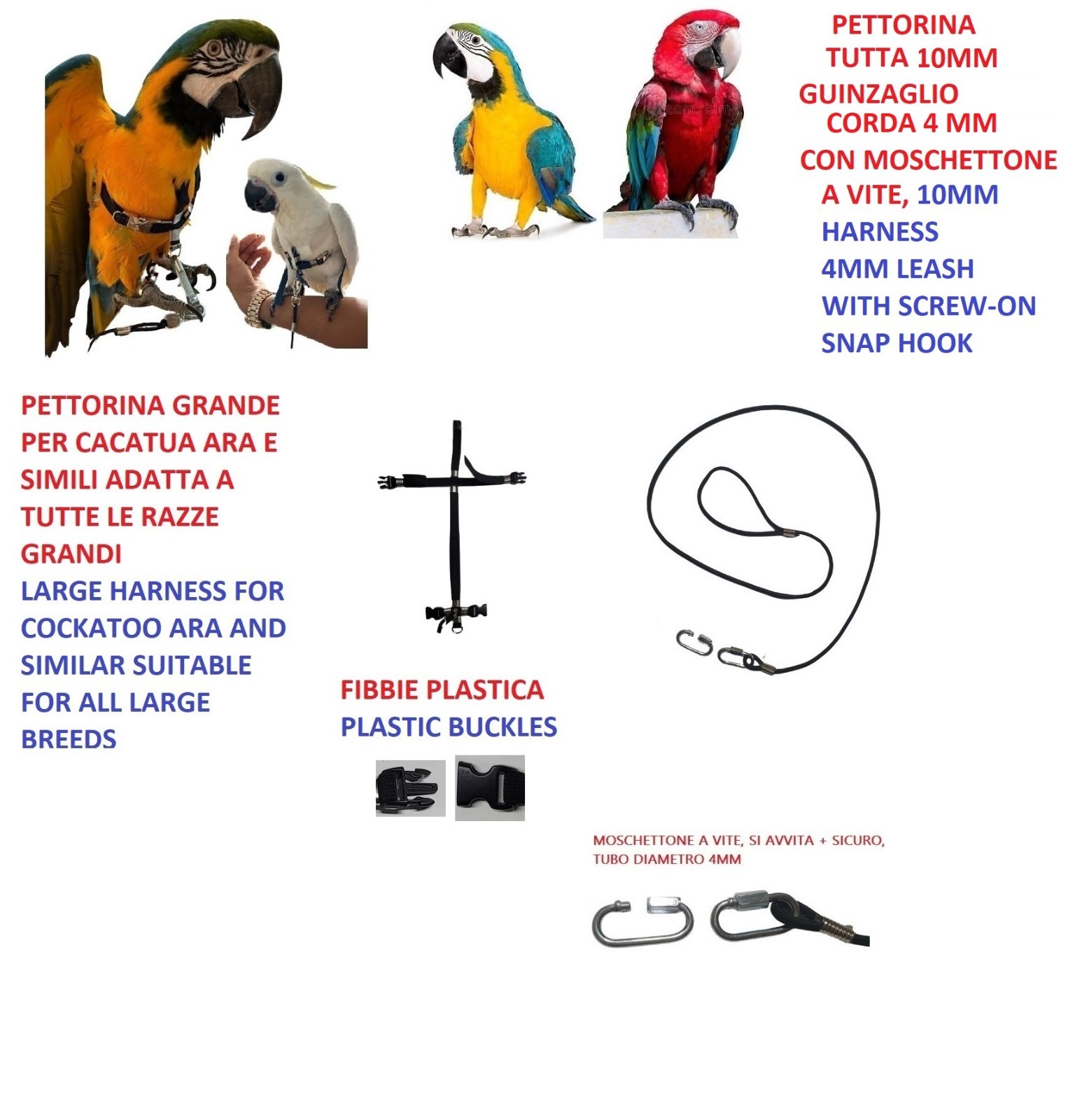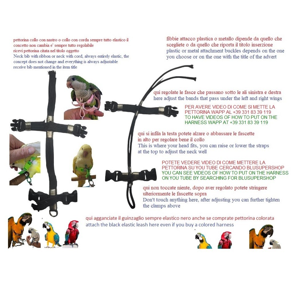 Parrot Harness FOR ALL BREEDS QUICK ATTACH Metal Buckles YY V4M