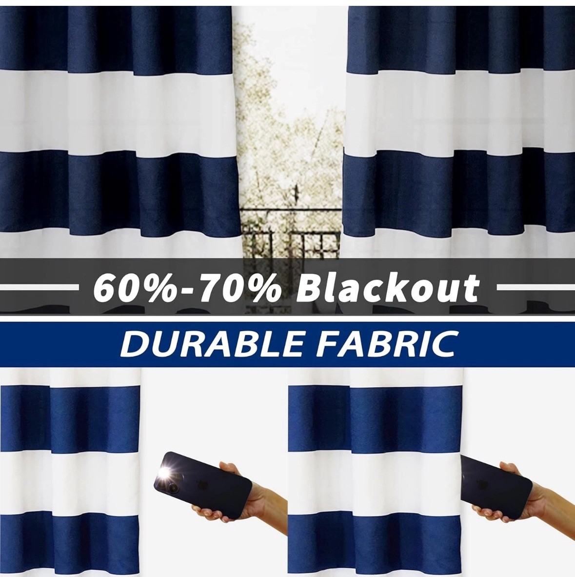 DriftAway Navy Striped Room Darkening 52W x 54L Pack of 2 , and White