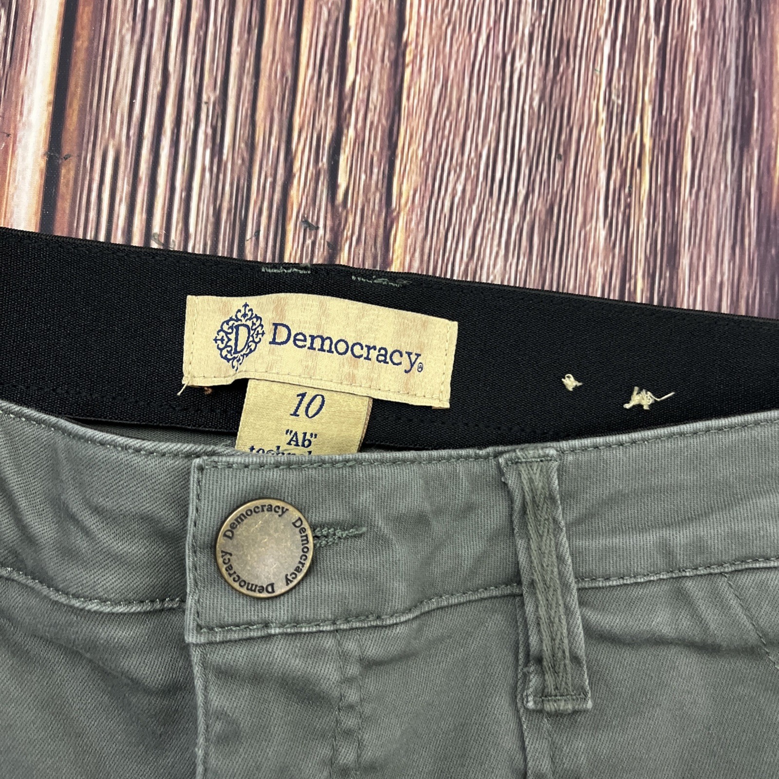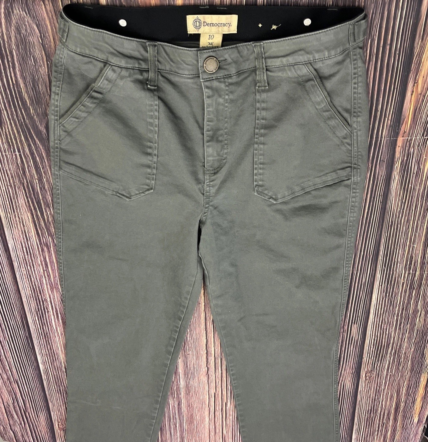 Democracy Ab Technology Straight Leg Womens Green Pants Size 10 Stretch