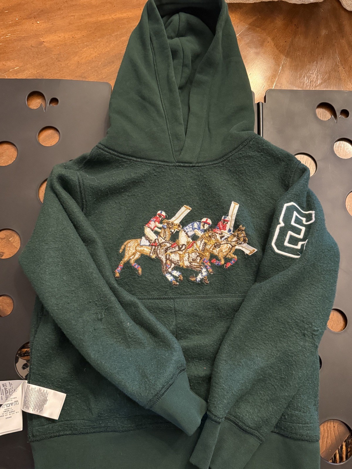 Youth Polo Ralph Lauren Embroidered Triple Pony Hoodie Dark Green sz S 8