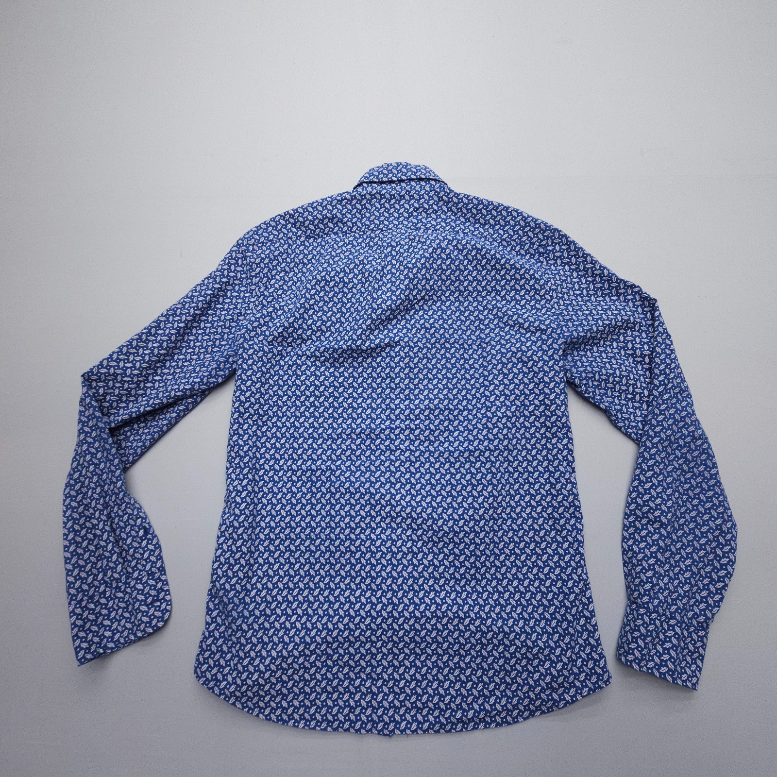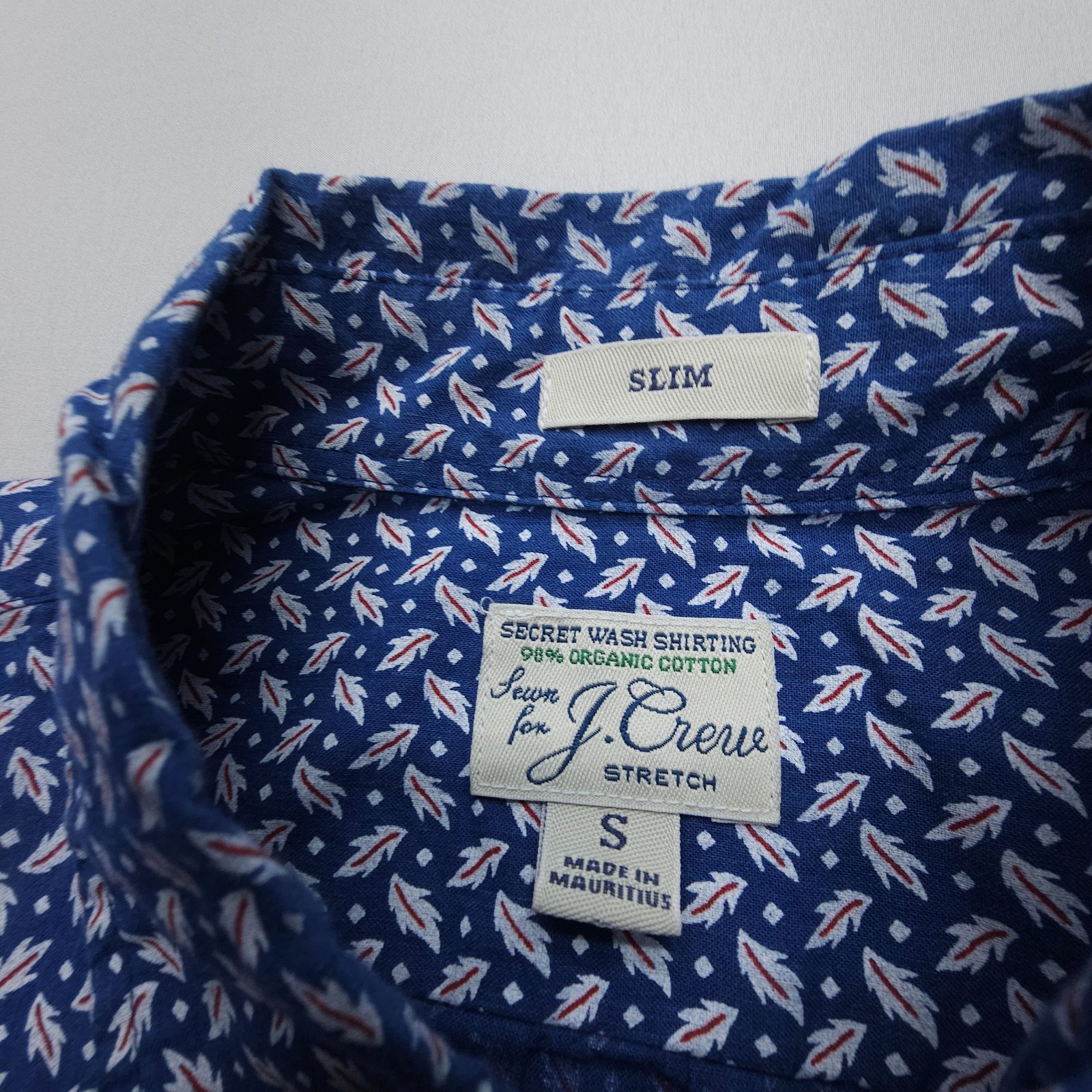 J. Crew Secret Wash Button Down Shirt Mens Small Slim Blue Print Organic Cotton