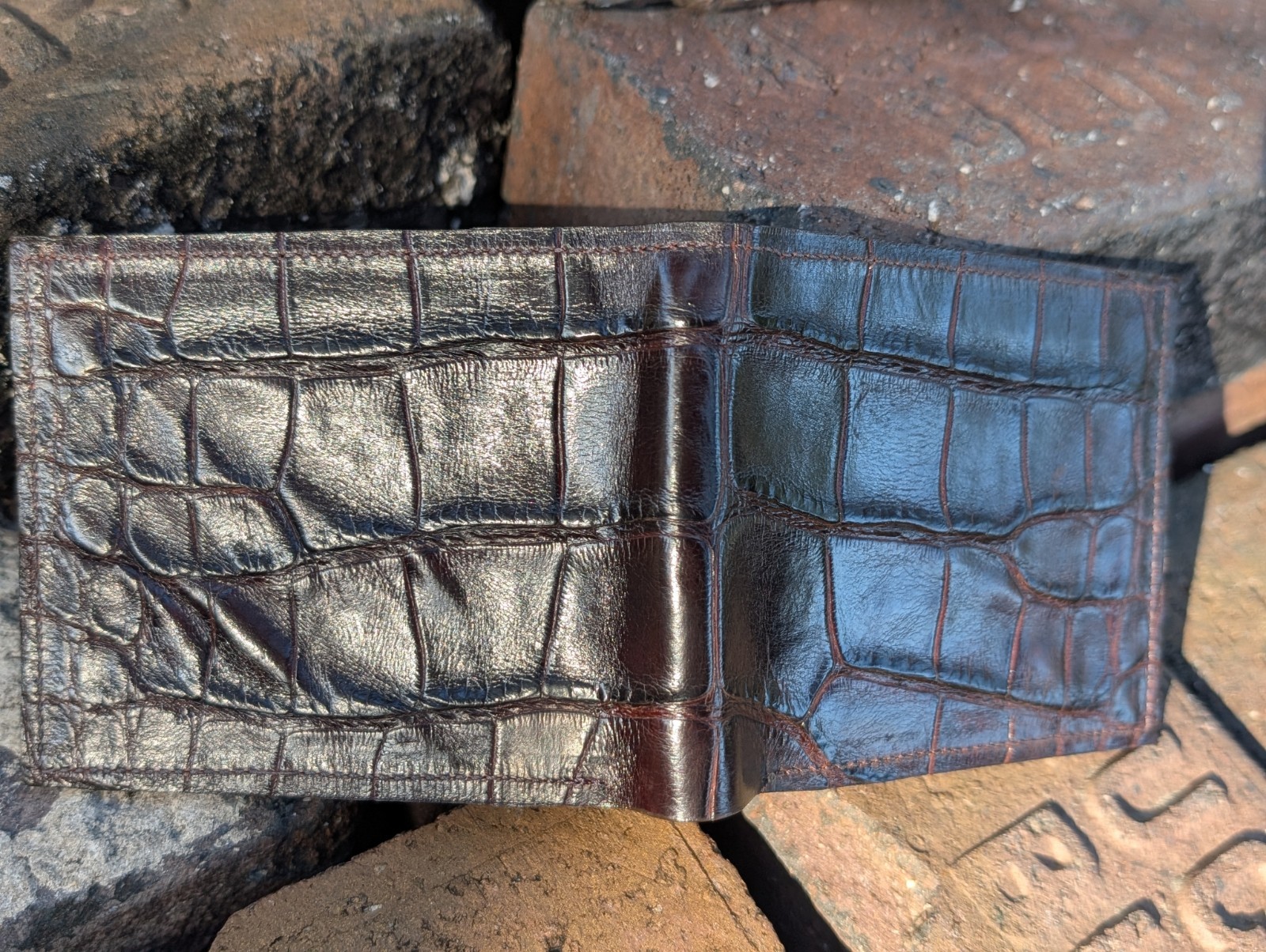 как выглядит American Wild Alligator leather Bifold Wallet Swamp Skin Gator Hide Oct4 фото