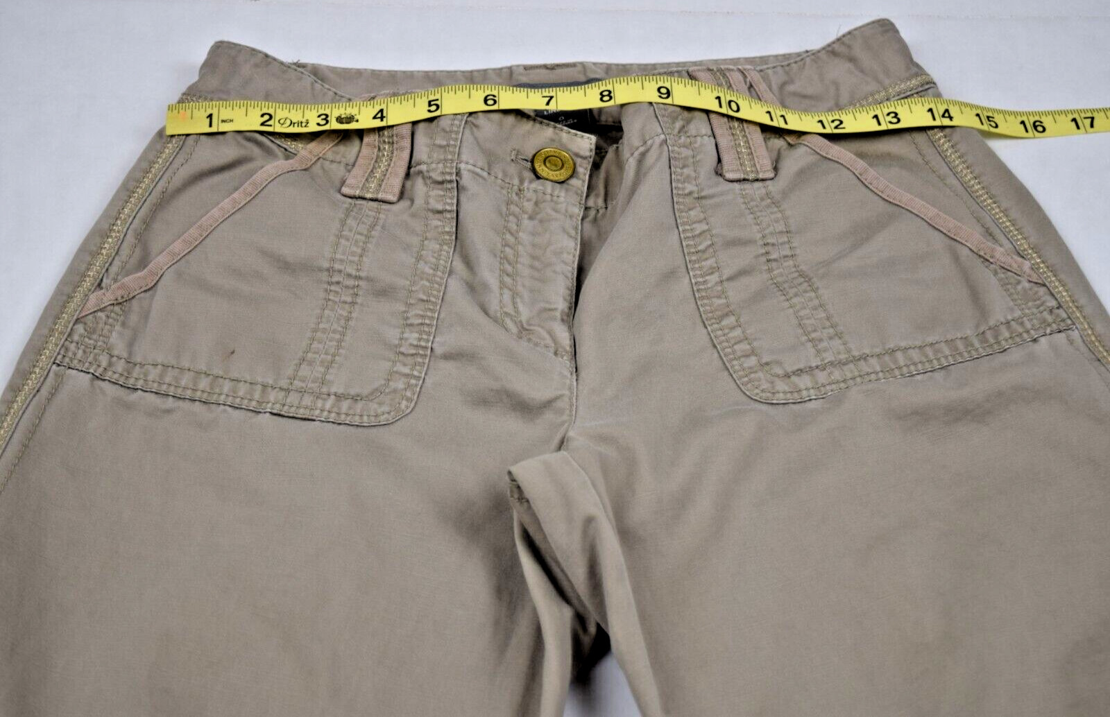 как выглядит Vintage Cargo Pants Size 0 28 x 31 90s Ann Taylor Olive Beige Glitter Seams фото