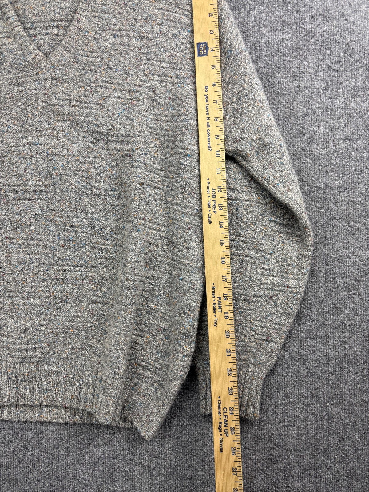 Vintage Robert Bruce Sweater Mens Large Gray V Neck Made in USA Speckled 90s