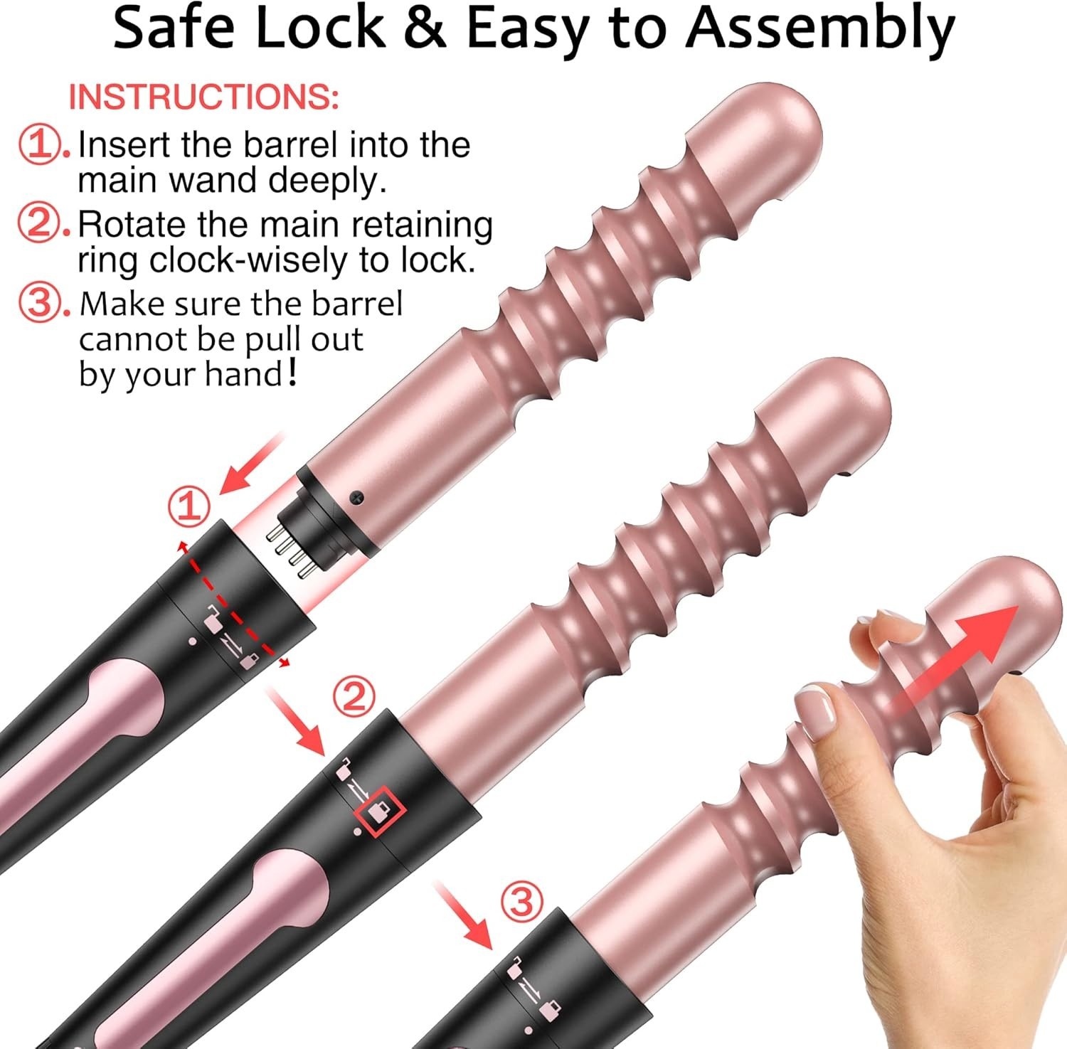 Curling Iron, Curling Wand Set, Instant Heat Up Hair Curler with Interchangeable