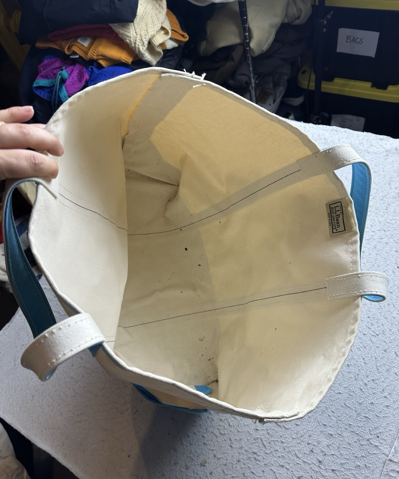 как выглядит Vintage L.L. Bean Boat Tote Canvas Bag Size Large Blue USA Made 90s фото