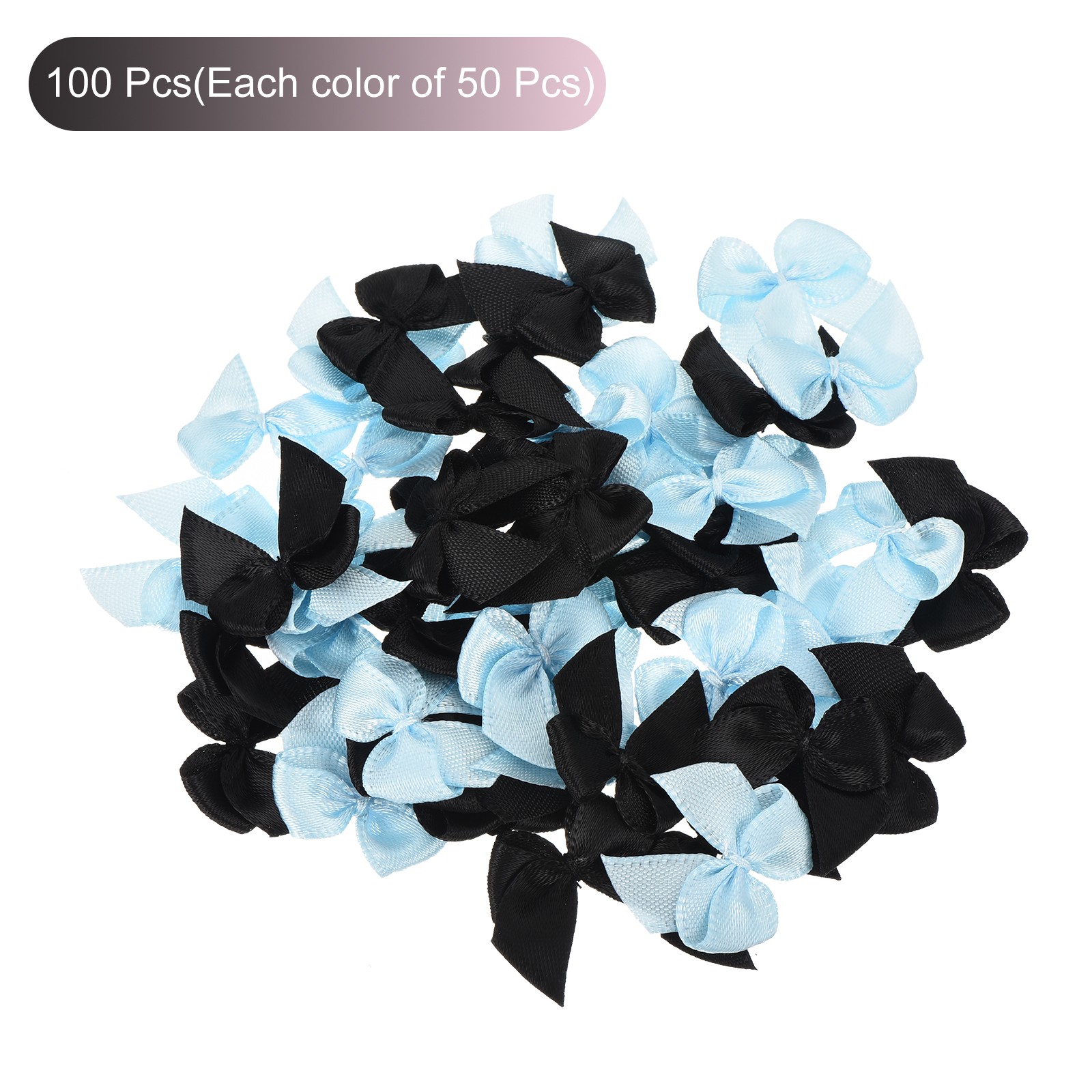 100Pcs Mini Ribbon Bows 1 Mini Fabric Satin Ribbon Flower Bows Black Blue