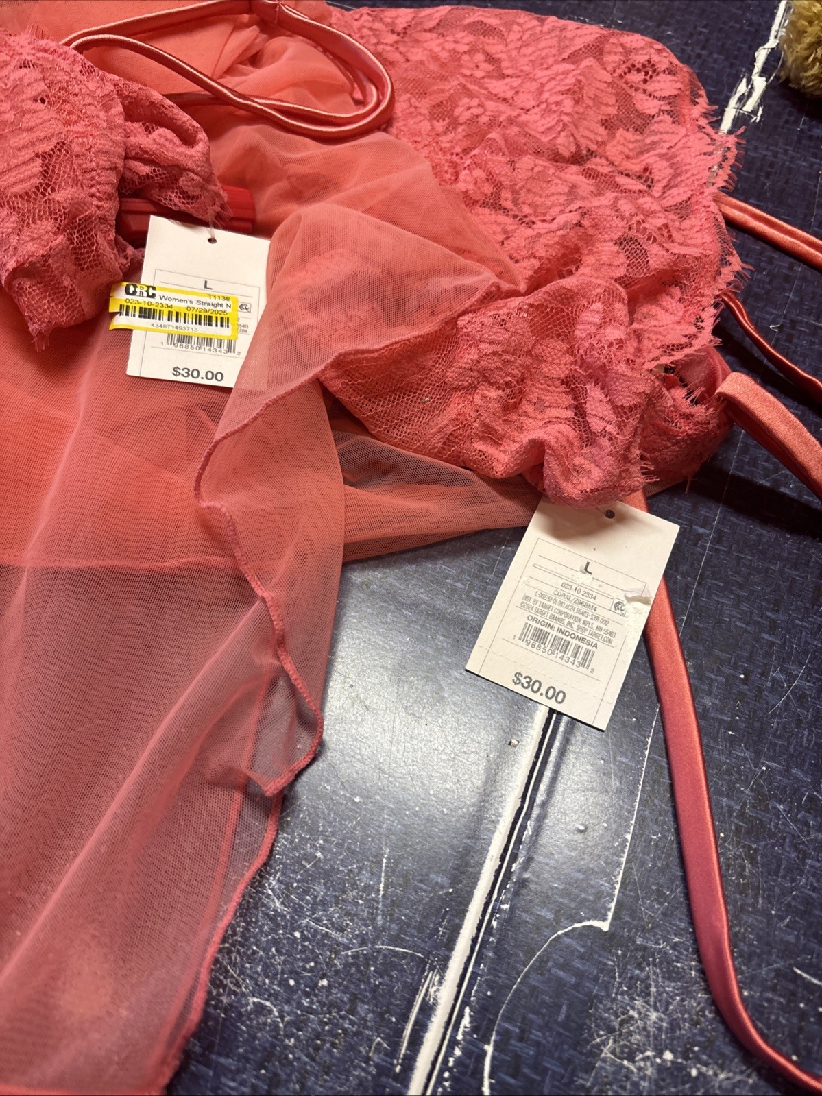 Women's Straight Neck Lingerie Babydoll Slip Dress - Auden Coral L Bin 23s