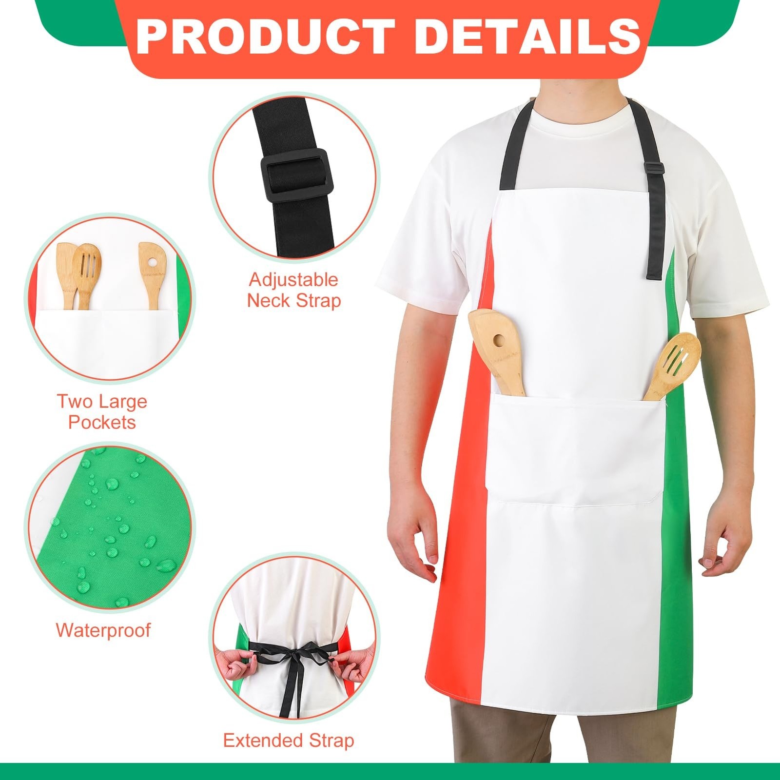 как выглядит Italian Flag Apron and Chef Hat Set, Waterproof Cooking Apron for Women and M... фото