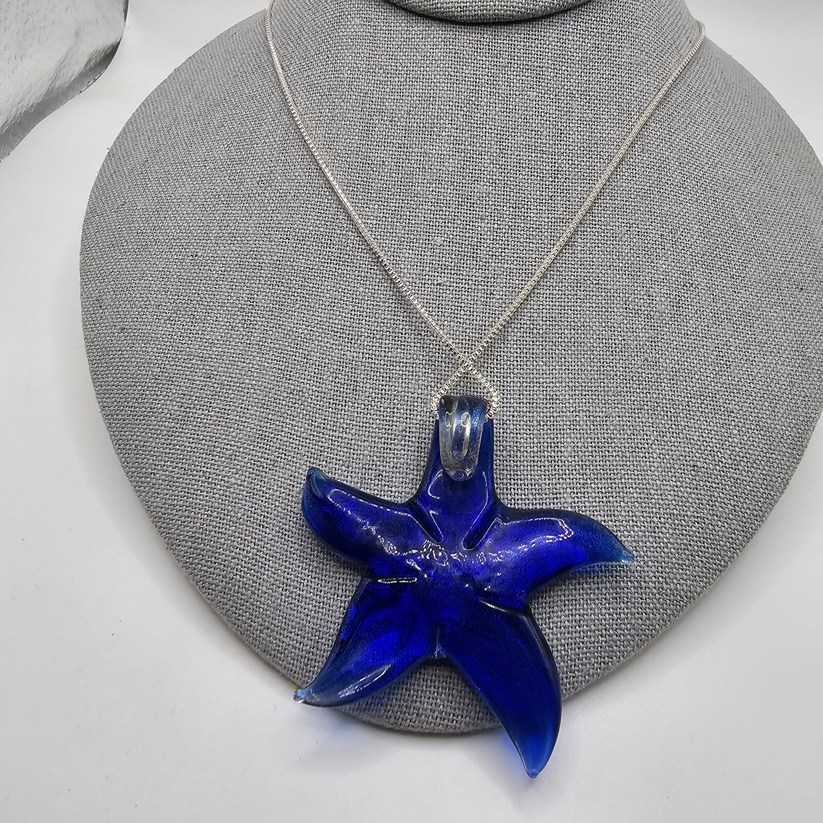 glass pendant starfish necklace with 19 silvertone chain