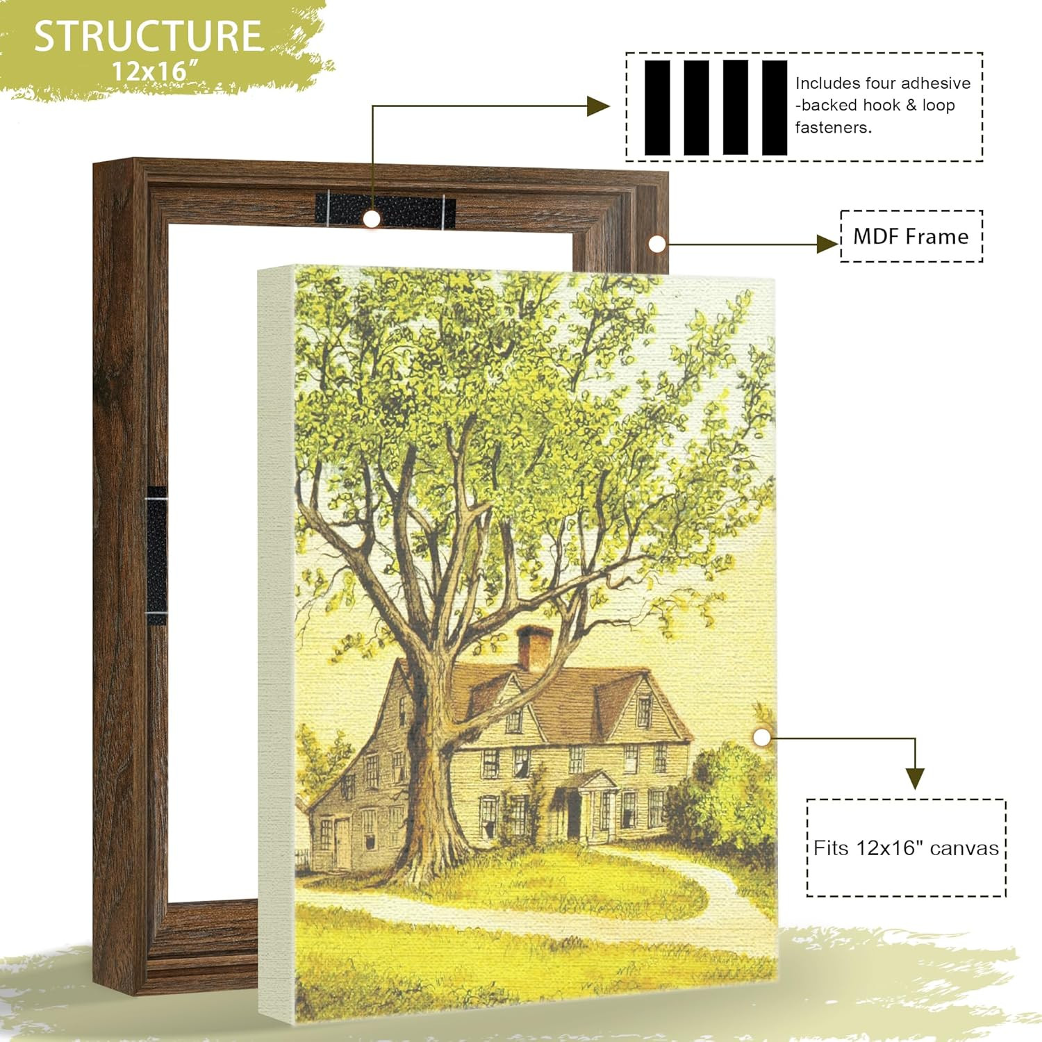 12X16 Canvas Floating Frame with 0.9 Deep, Brown Floater Frame for Canvas Paint