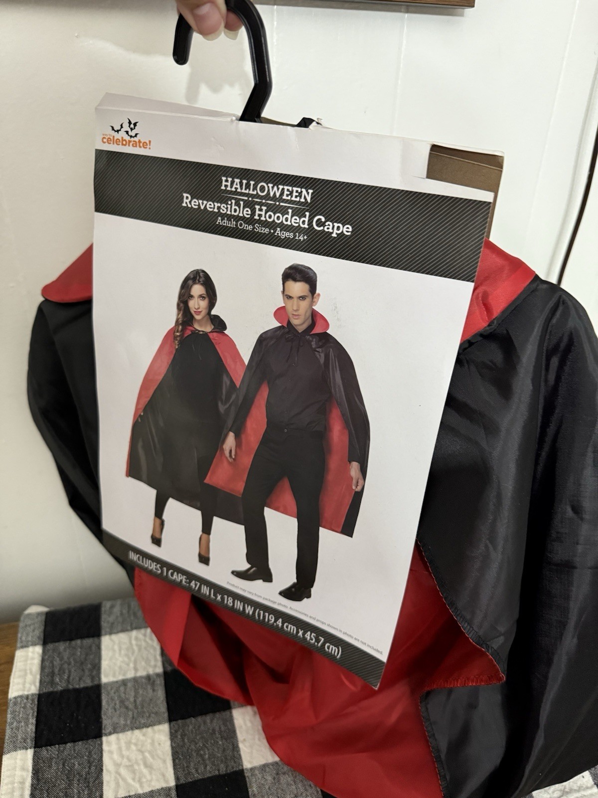 как выглядит Reversible Hooded Cape Black Red NWT фото