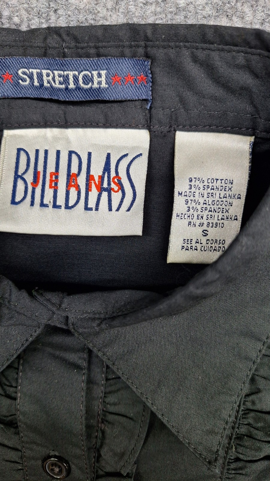 Vintage 90s Tuxedo Black Ruffled Front Size Small Retro Button Up Stretchy NOS