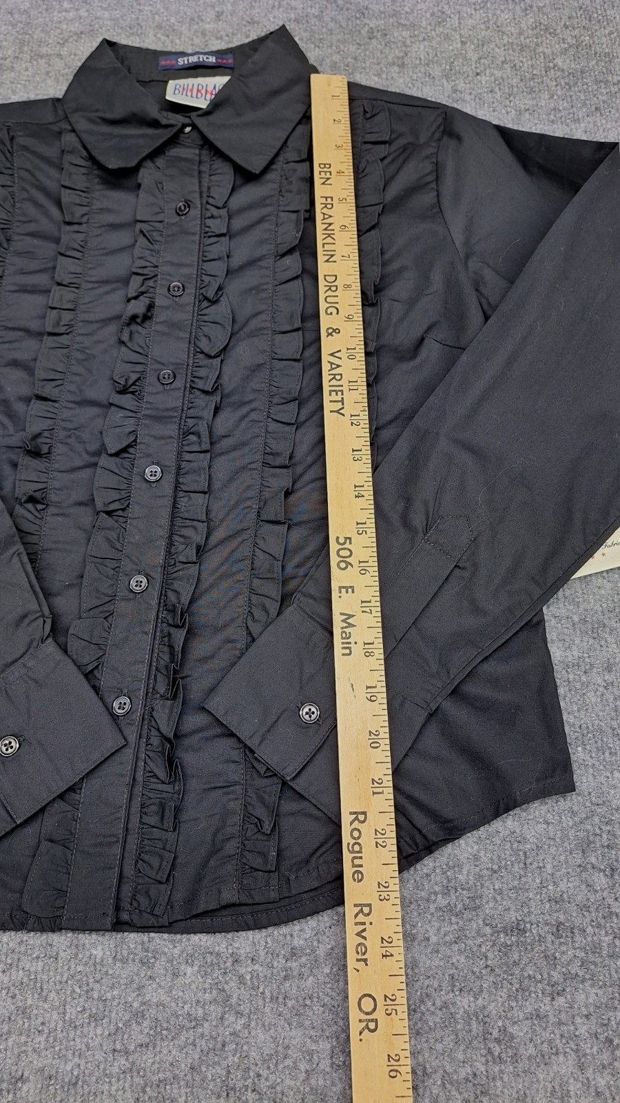как выглядит Vintage 90s Tuxedo Black Ruffled Front Size Small Retro Button Up Stretchy NOS фото