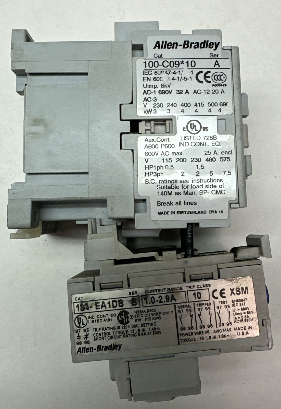 Allen Bradley,100-C09 10,7.5 HP Motor Starter w/ 193-EA1DB-B Overload Relay