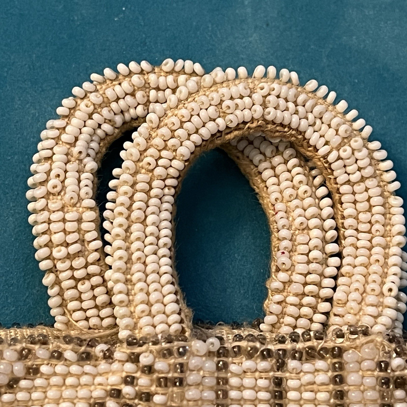 Vintage MicroBeaded Purse Bag Art Deco Cream Tan Gray Grandma core Read
