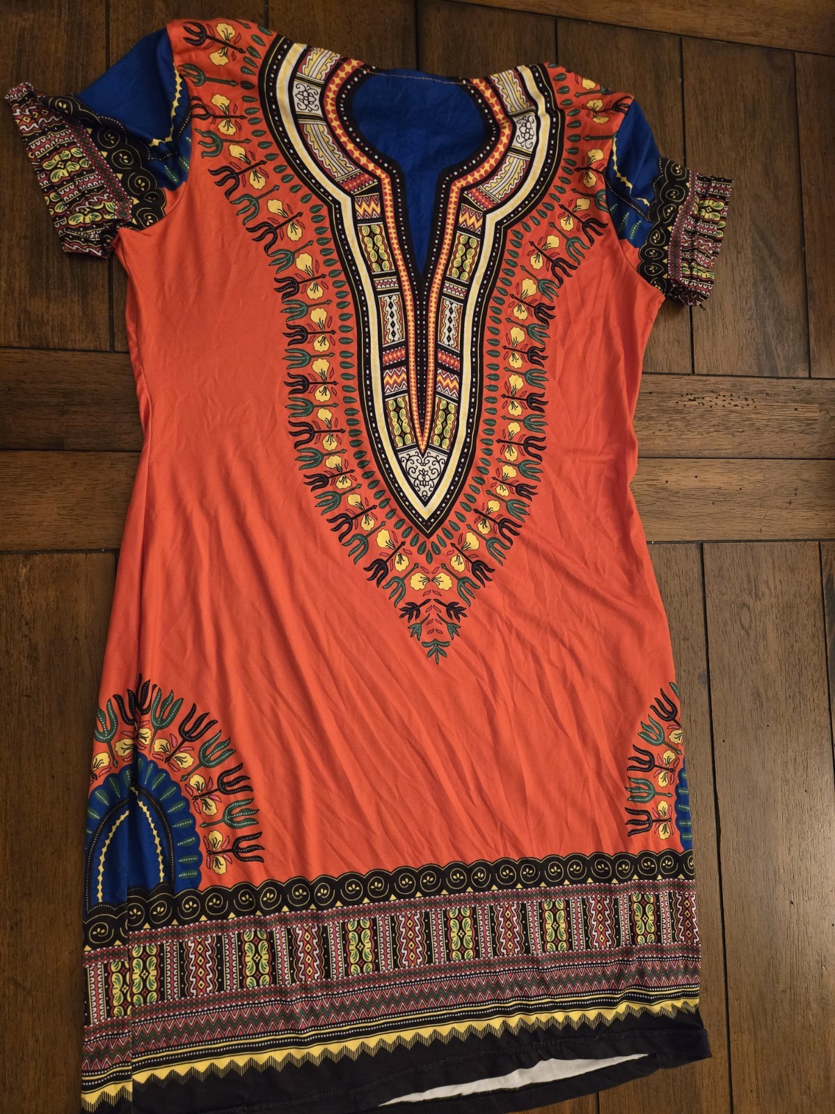 как выглядит African Print Tunic Shirt Top Size L/XL Bright Colorful Pullover Shirt Orange фото