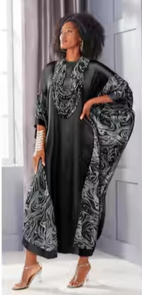 OSFM Ashro Amahle Ethnic Satin Elegance Caftan W/ Rope Necklace Green Multi Set