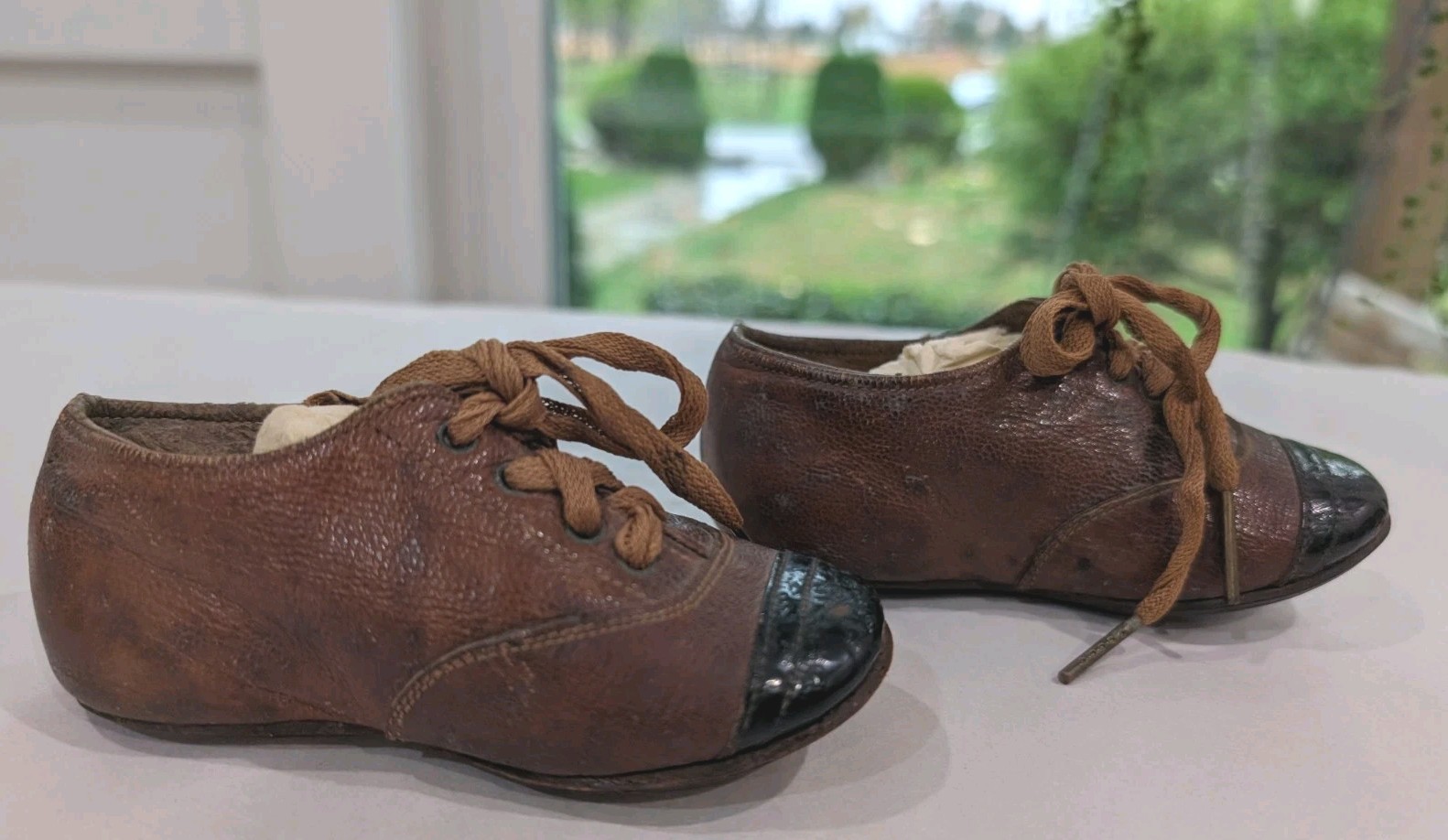 Antique Pair Victorian Leather Baby Boot Shoes Toddler Laced