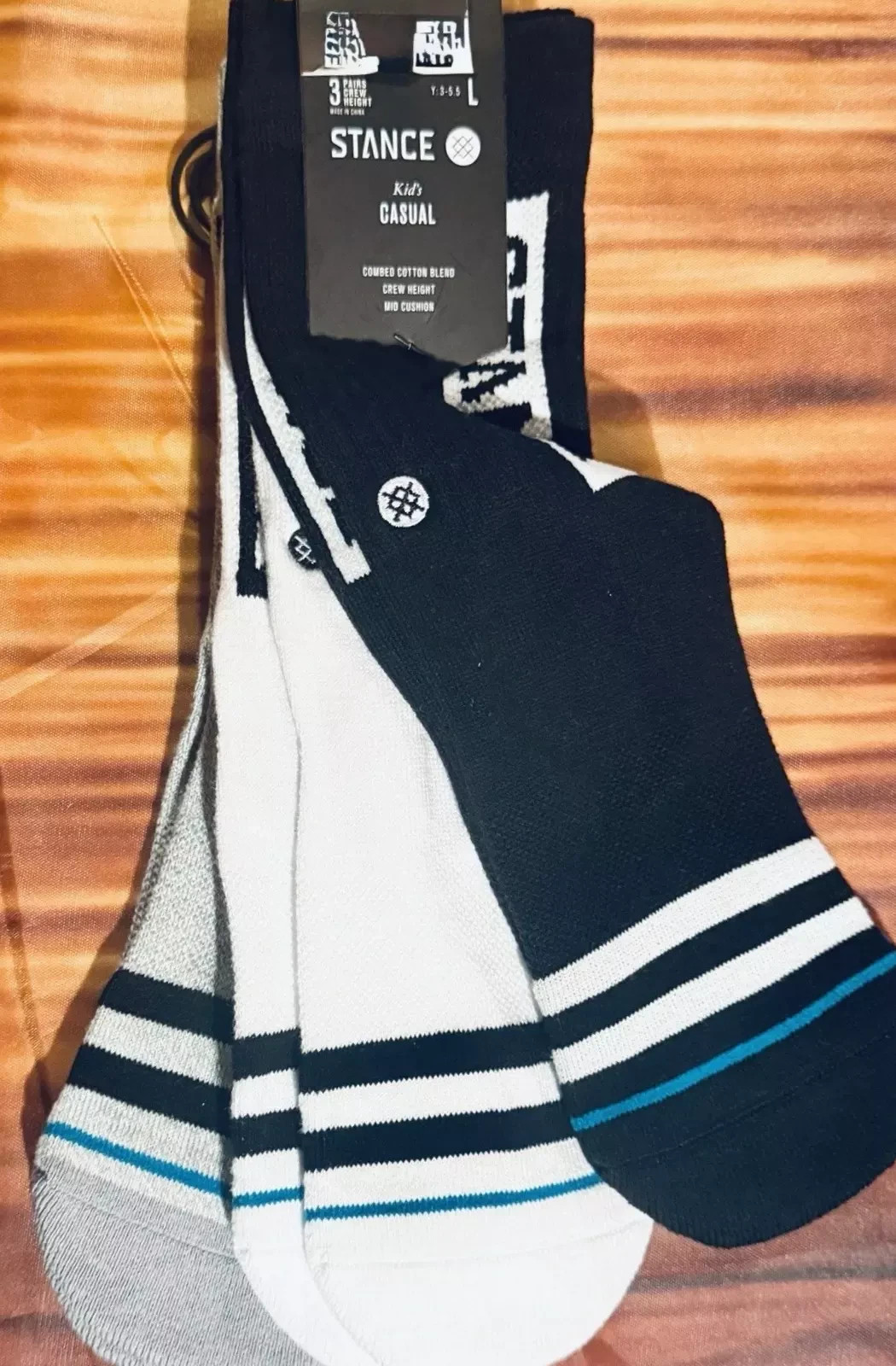 как выглядит NEW Stance OG ST 3 Pack Kids Crew Length Socks blk-gray-white Yth Sz Large 3-5.5 фото