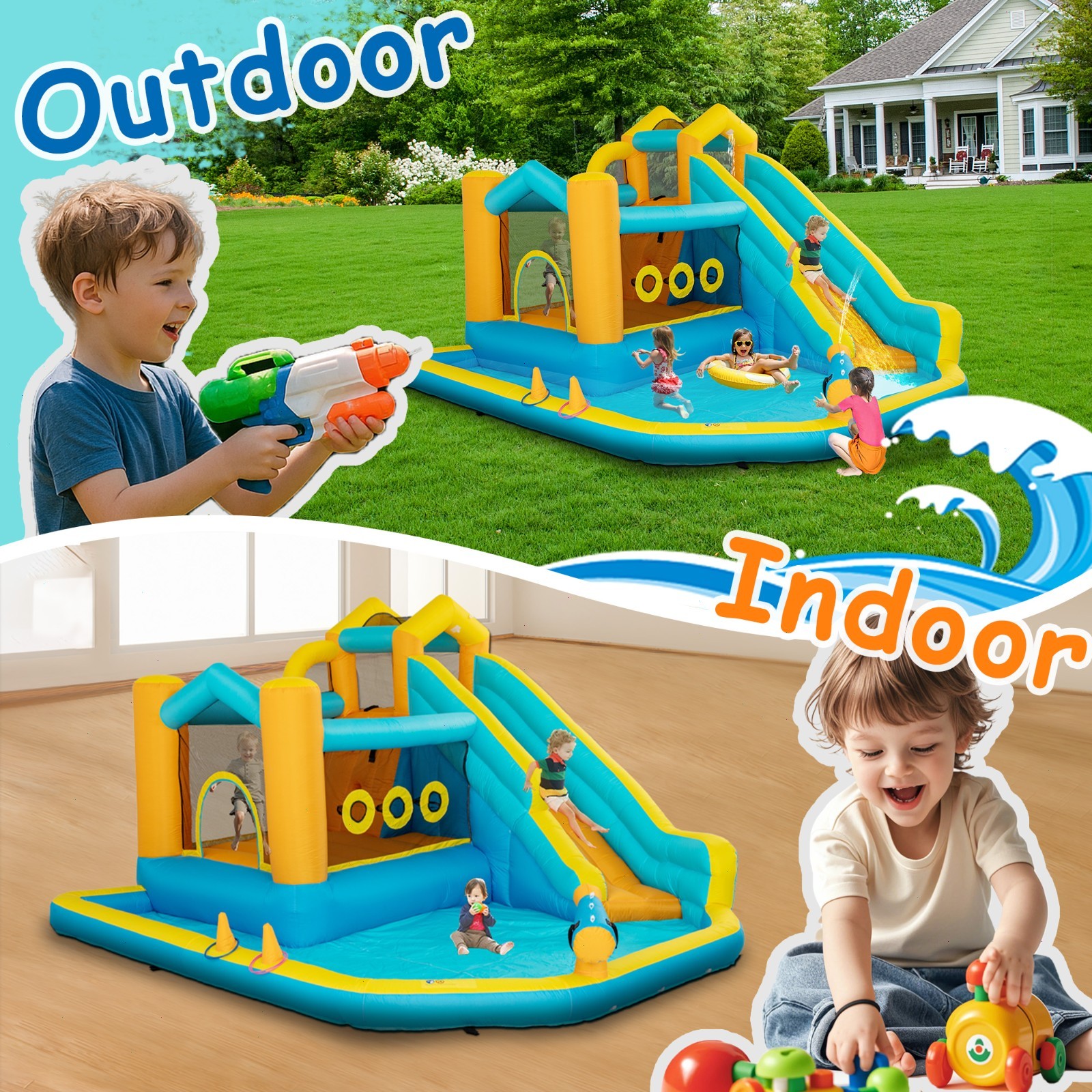 Castle Theme Outdoor Inflatable Water Slides Bounce Houses