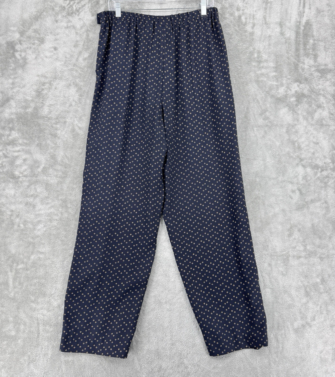 Vintage Liz Claiborne Pants 14 Wide Leg Pleated Pockets Flowy Geometric Navy Zip