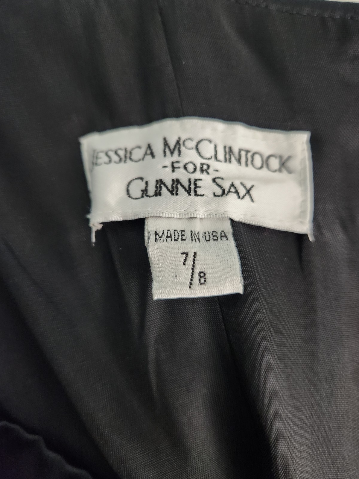 как выглядит Vintage Y2K Jessica McClintock For Gunne Sax Black and Pink Corset Dress 7/8 фото