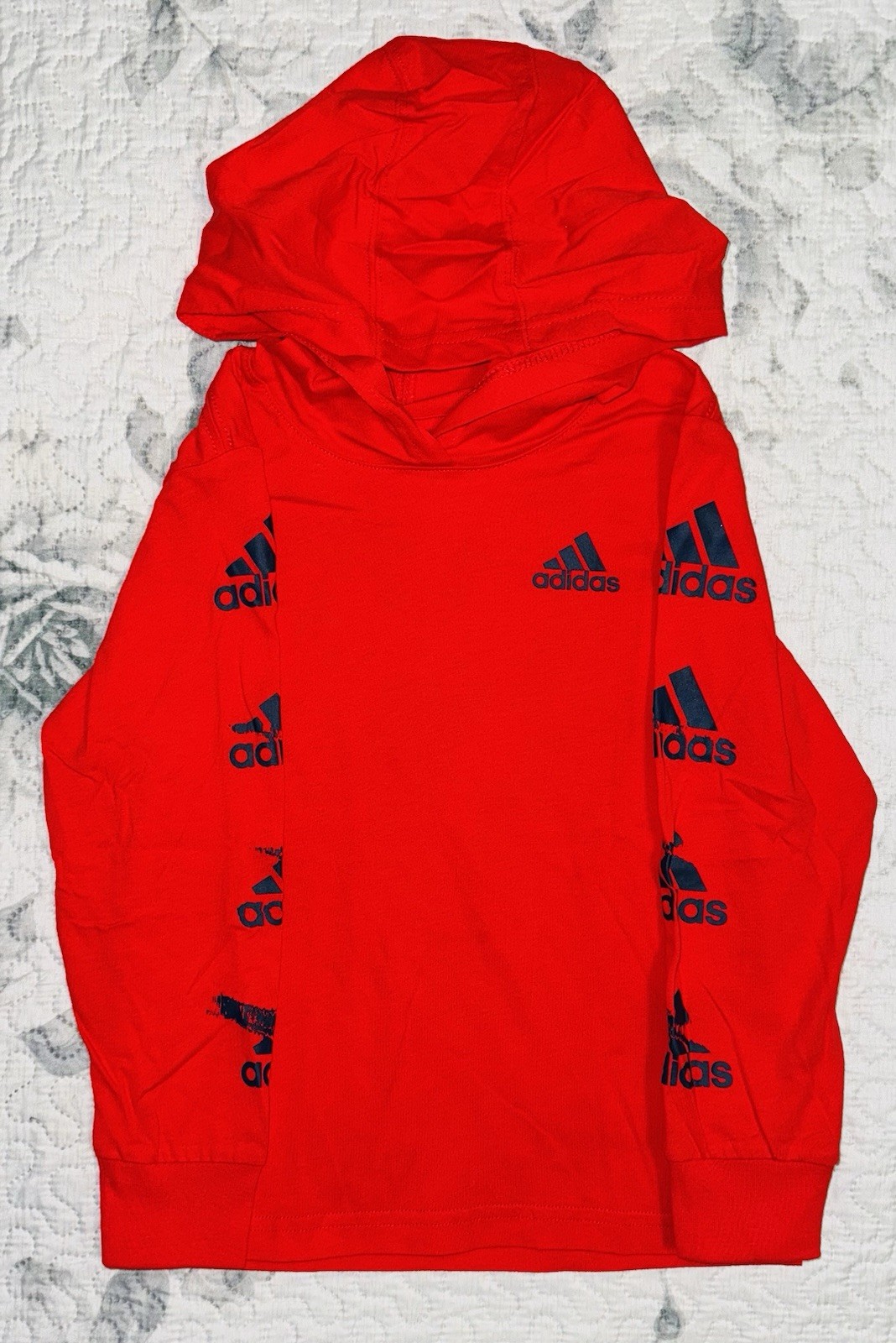 как выглядит Little Boy Adidas Red Navy Hooded Long Sleeve Navy Red Pants Set Sz/ 4 фото