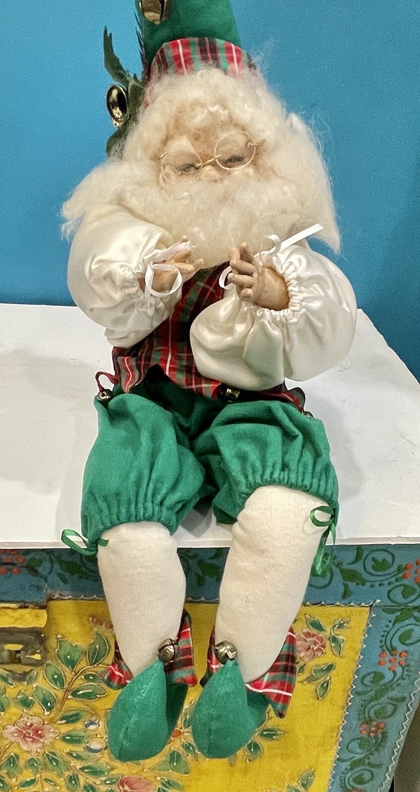 как выглядит Christmas Decor Santa Elf Sitting Doll/Figurine 18 Porcelain Hands And Face фото
