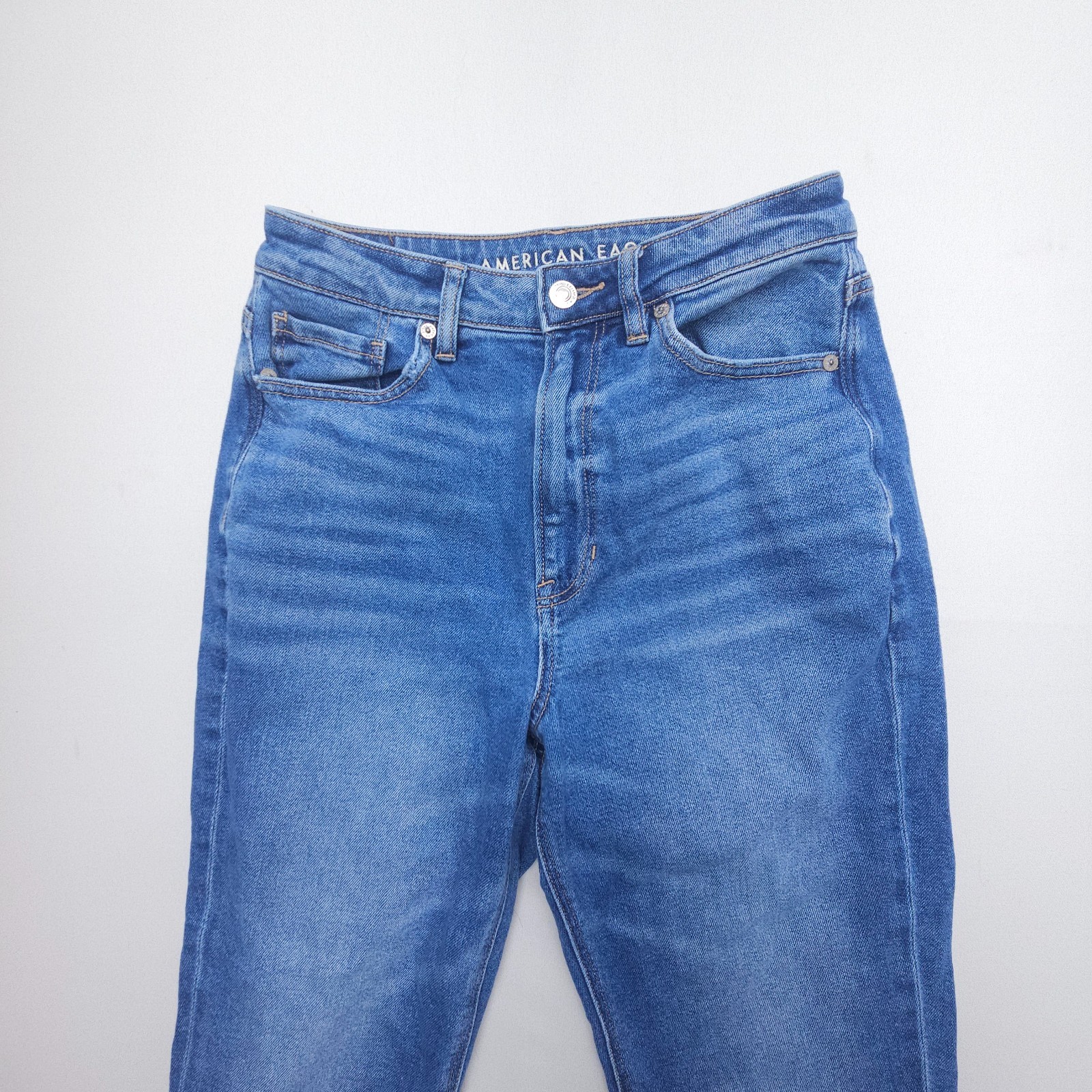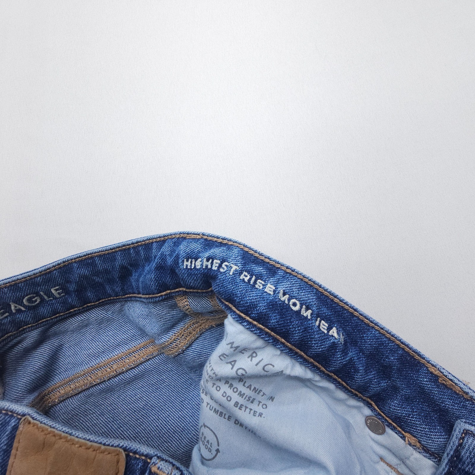 American Eagle Highest Rise Mom Jeans Size 6 Blue Stretch Cotton Model Denim