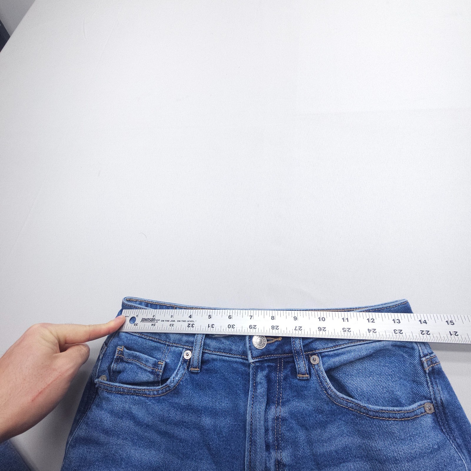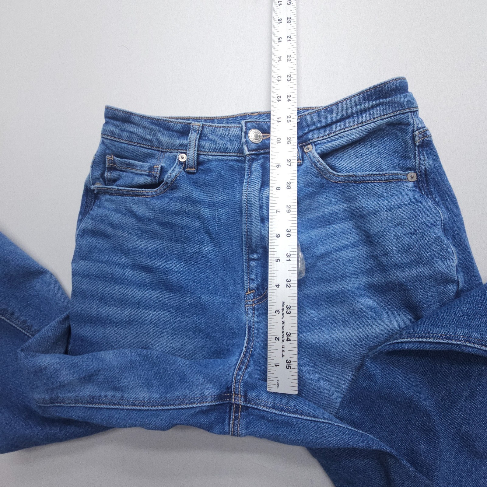 как выглядит American Eagle Highest Rise Mom Jeans Size 6 Blue Stretch Cotton Model Denim фото