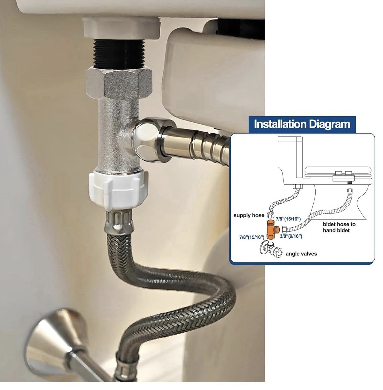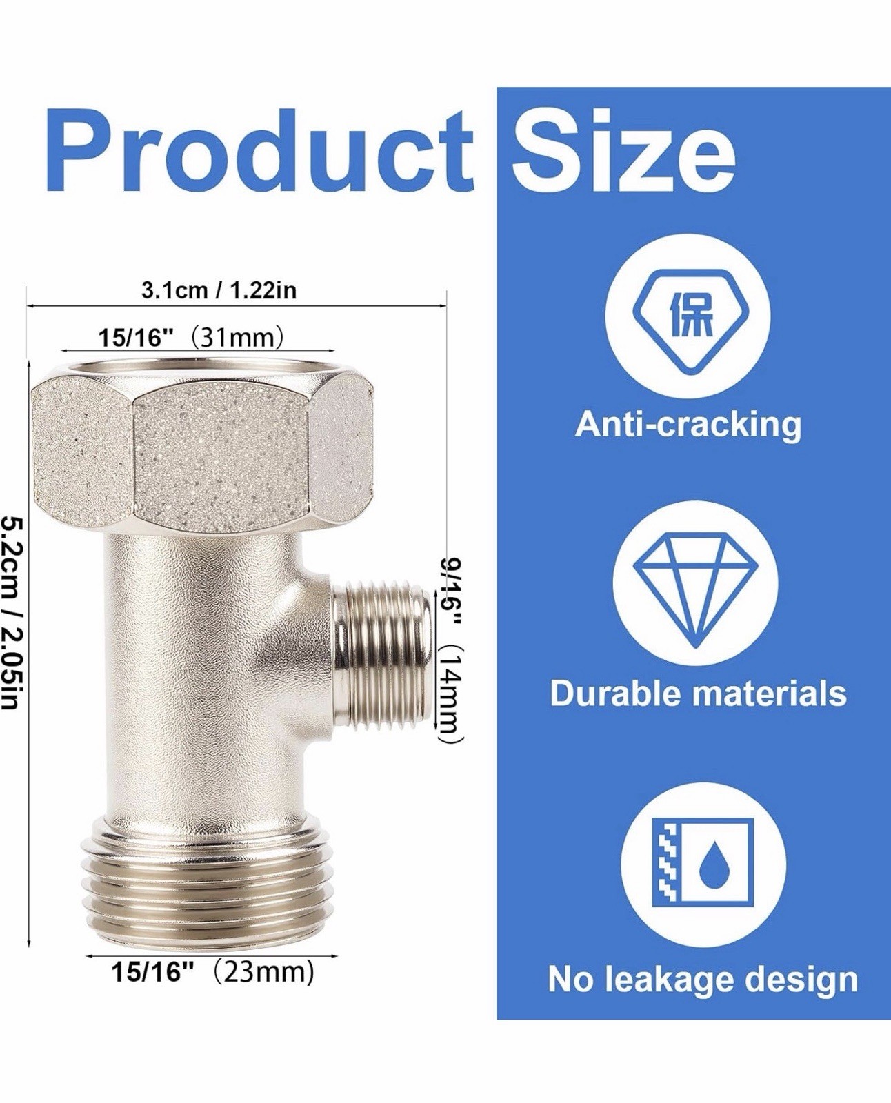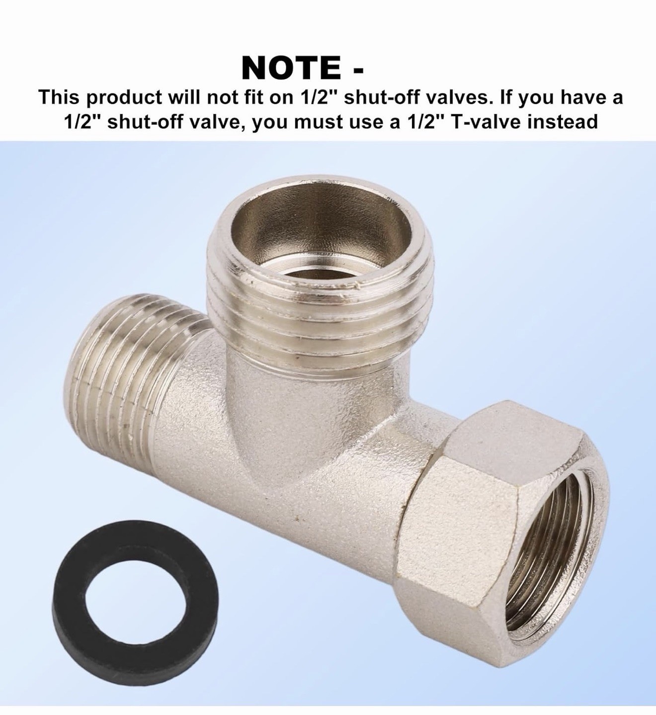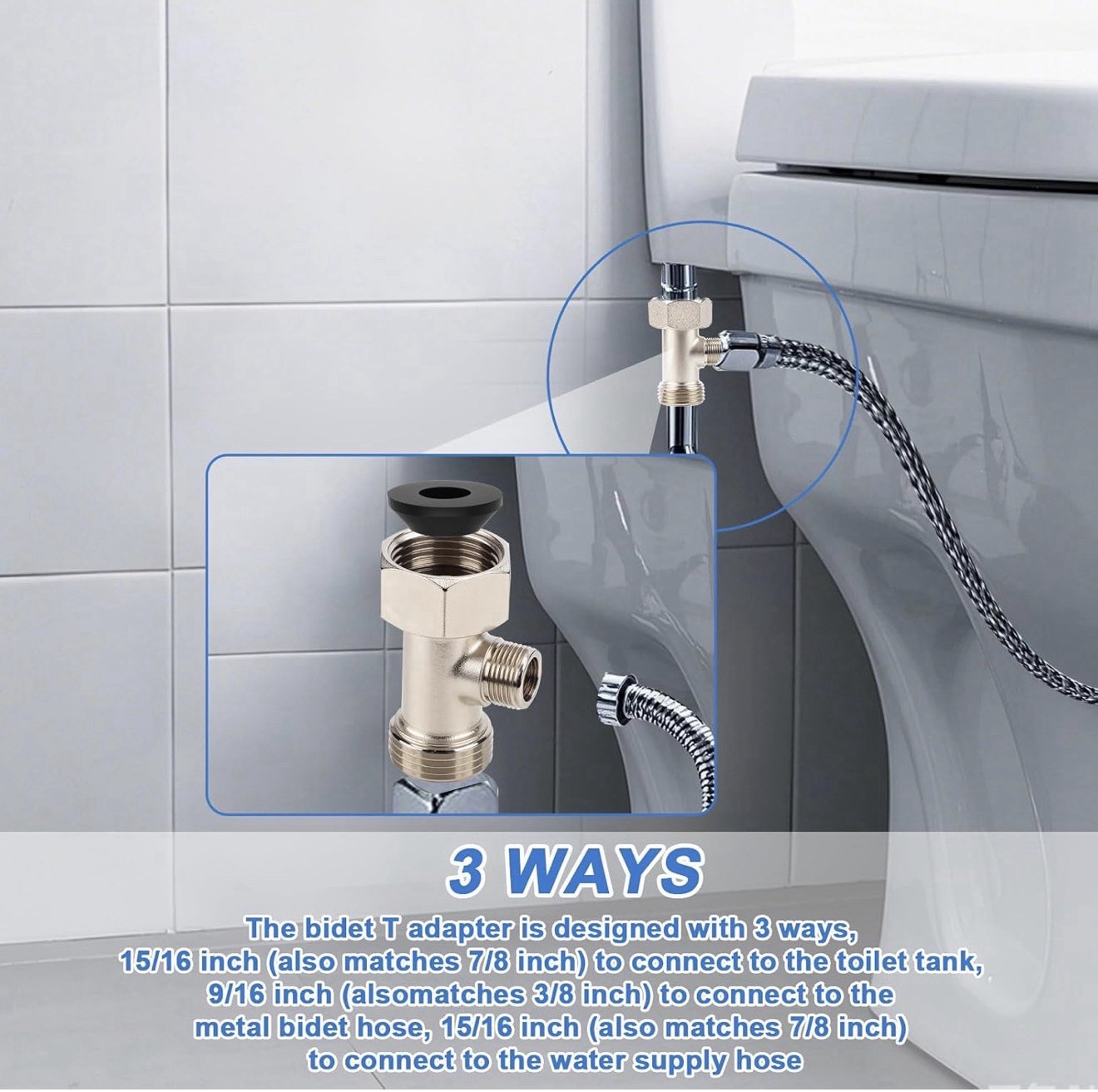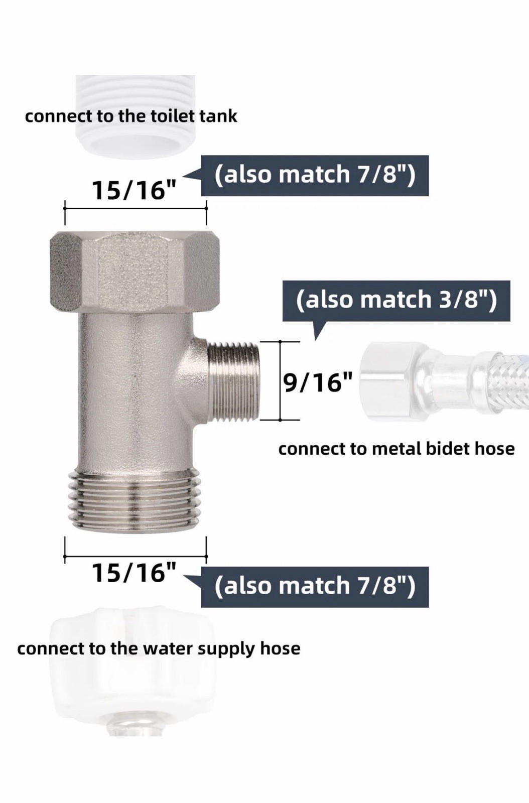 Bidet T Adapter,Metal T Valve for Bidet 7/8''x7/8''x3/8'' ,3 Way Tee Connector