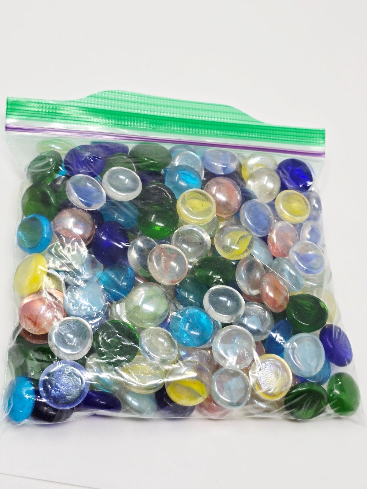 1 LB 11 oz MIXED FLAT GLASS MARBLES ACCENT GEMS VASE FILLERS, MOSAIC Color