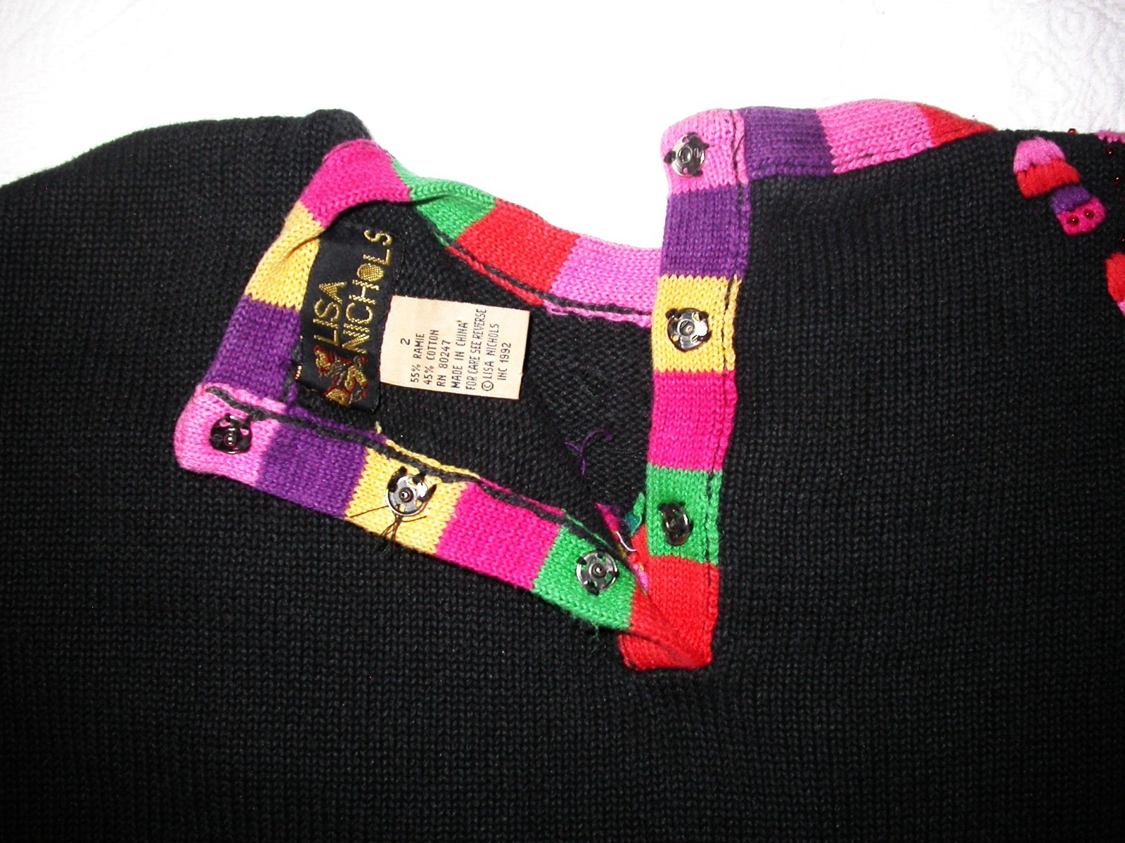 как выглядит VTG 90 s Oversized Bold Standout Embroidered Cardigan Sweater Sz 2 Lisa Nichols фото