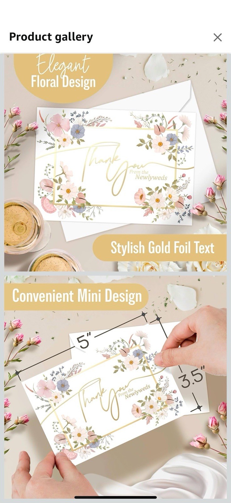 как выглядит Honeyplum Wedding Thank You Floral Card Set Of 48 фото
