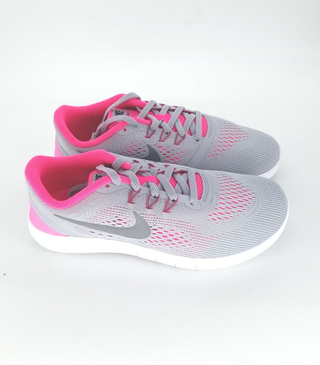 100 Nike Kids Free RN Running Shoes Wolf Grey/Metallic Silver Size 5.5 Y US