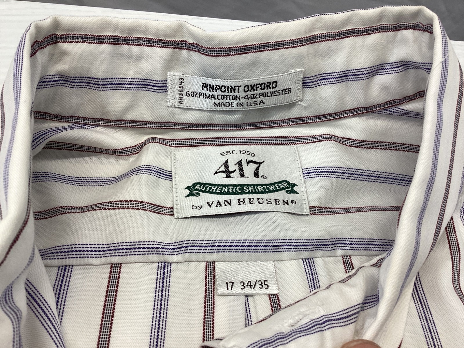 Van Heusen Shirt Mens 17 34 35 White Stripes 417 Pinpoint Oxford USA