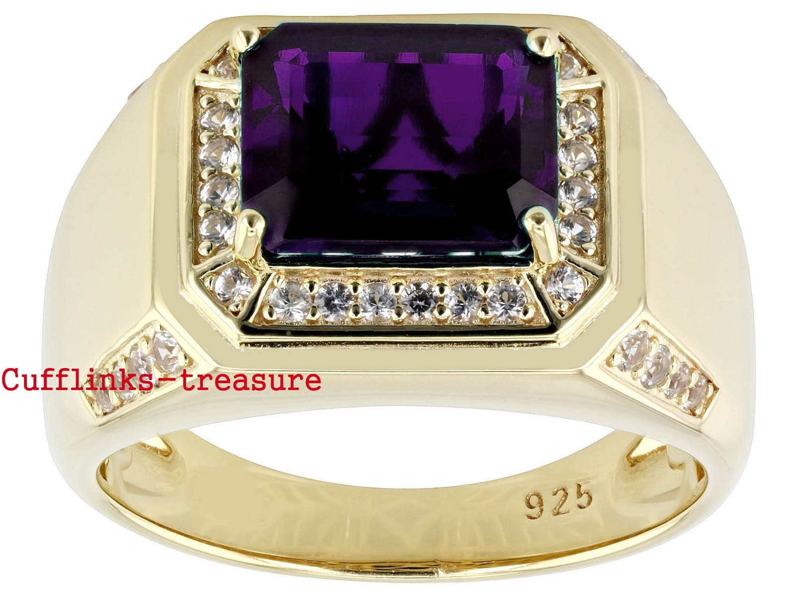 как выглядит Natural Amethyst CZ Gemstones with 925 Sterling Silver Gold Plated Ring 3412 фото