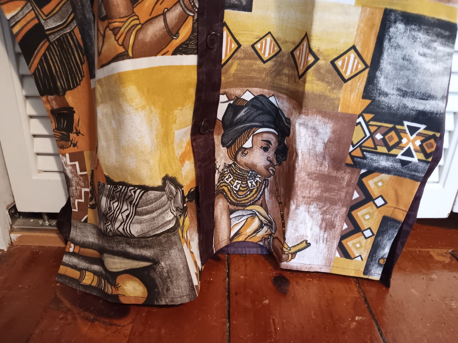 Brown African Patterned Man's Shirt handmade in Malawi short-sleeved M