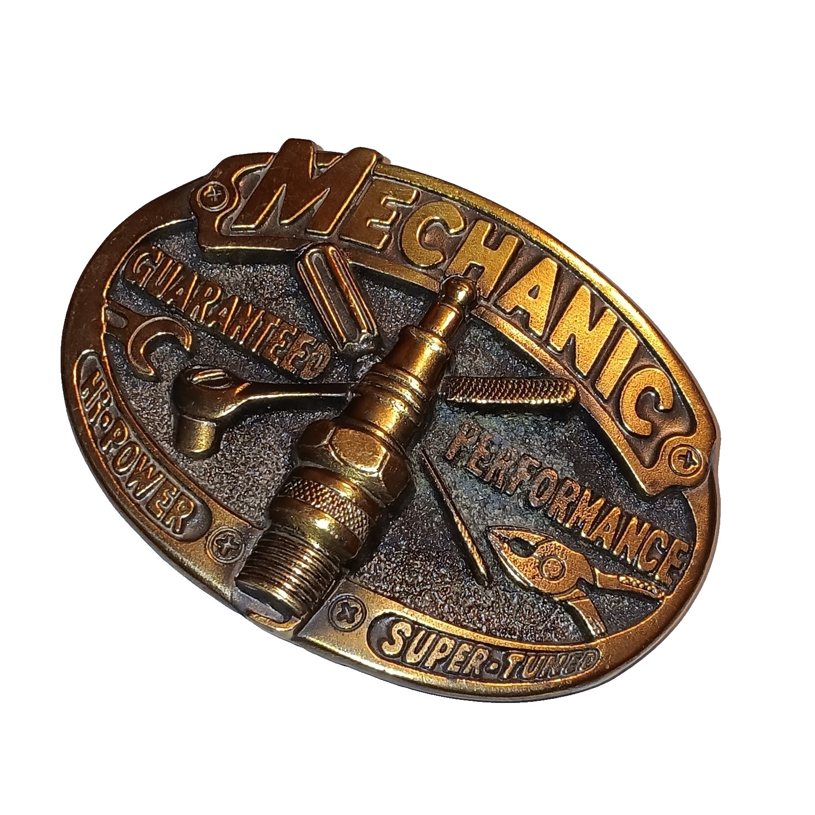VINTAGE GREAT AMERICAN BUCKLE CO MECHANIC BRASS BELT BUCKLE 1982 USA MADE H853