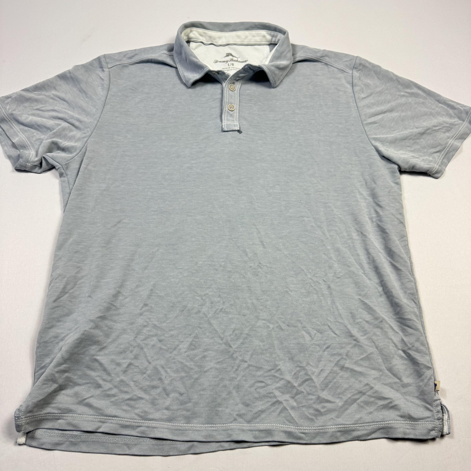Tommy Bahama Polo Shirt Mens Large Light Blue Tencel Blend Short Sleeve 3-Button