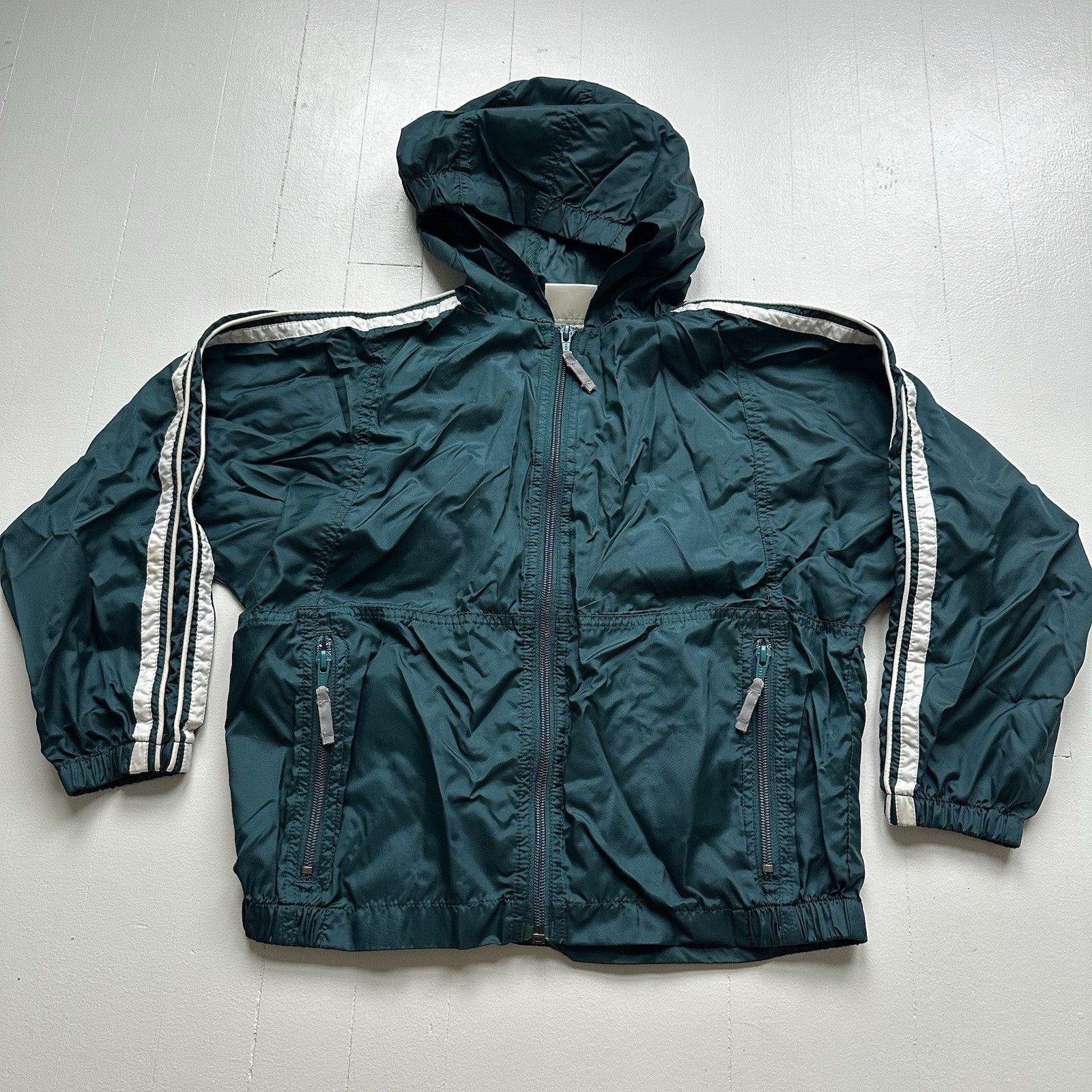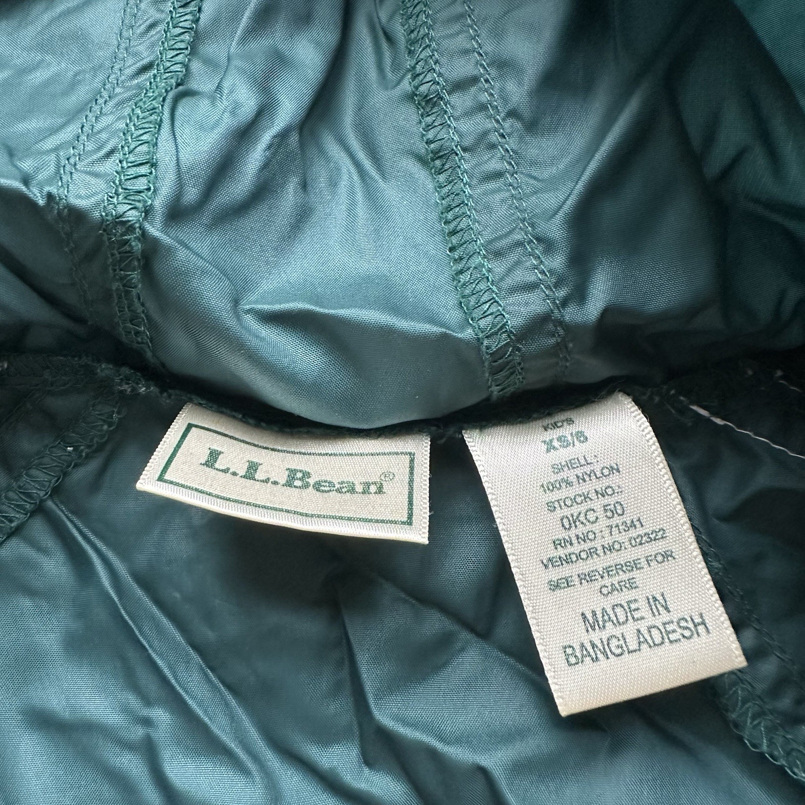 LL Bean Rain Jacket Youth Kids XS Green White Reflective Stripes Retro 90s