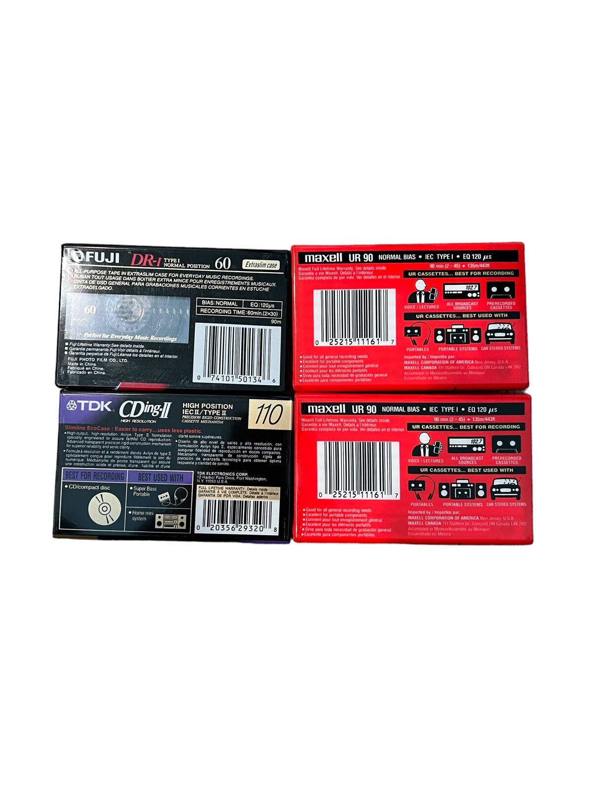 Maxell TDK Fuji Blank Audio Cassette Tapes 60 90 110 Minutes SEALED Lot of 4