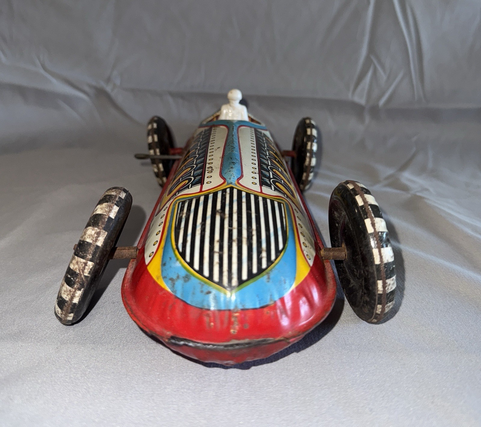 как выглядит Vintage Marx Tin Lithograph Wind-up Racing Car With Driver фото